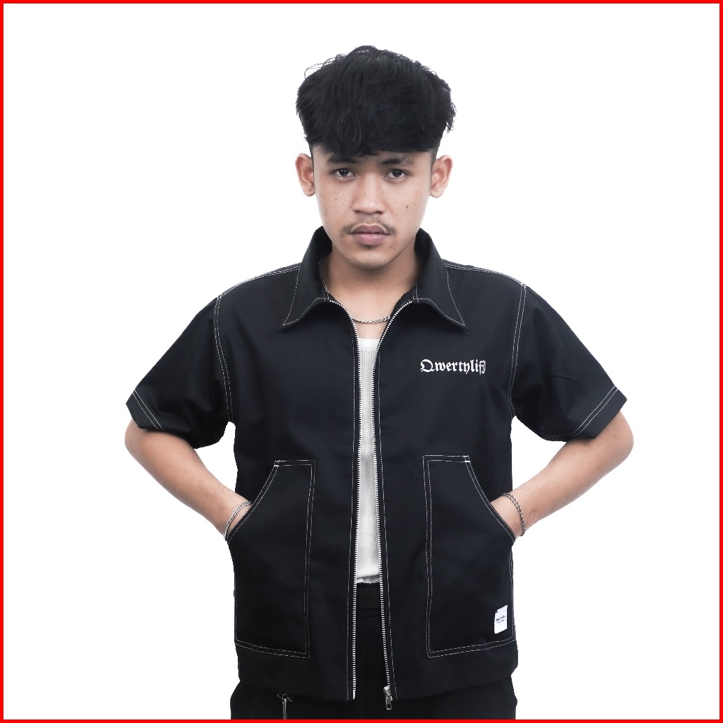 Qwertylife Workshirt Boxy Double Zipper Retake Black