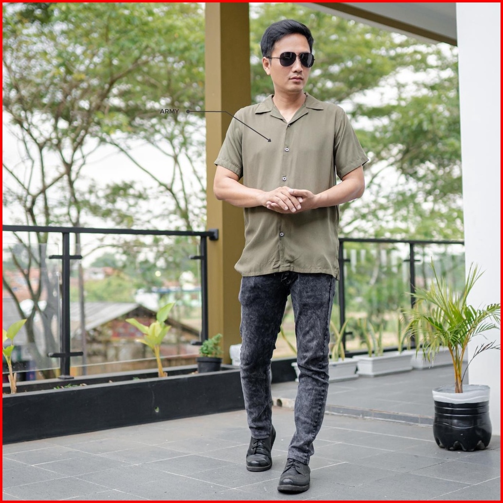 Ademinco Alvarez Kemeja Pria Rayon Twill Organik Atasan Baju Pria Tropical