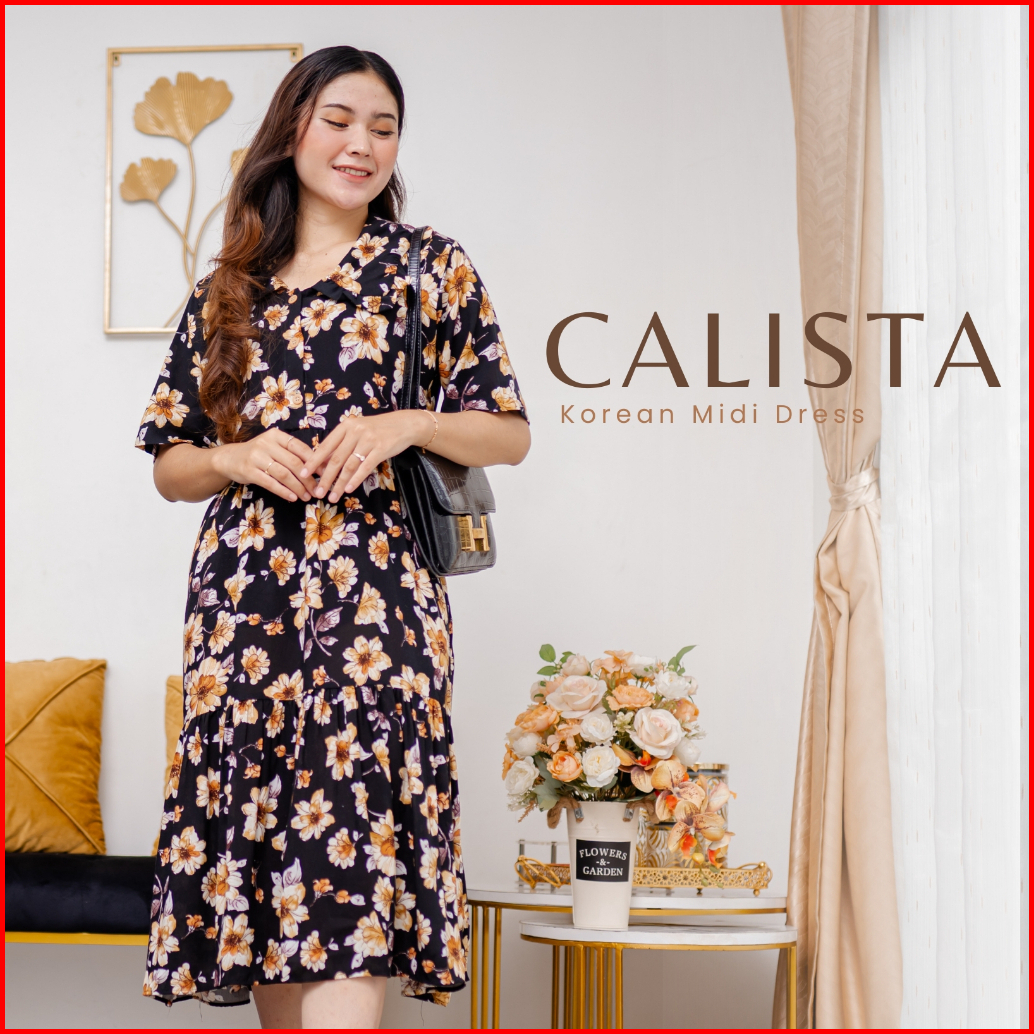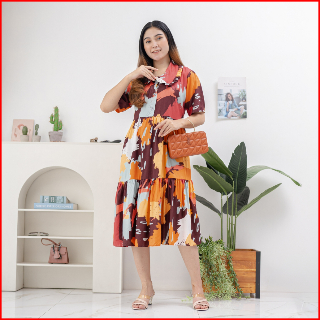 Ademinco Calista Midi Dress Rayon Reactive Daster Ruffle Bohemian