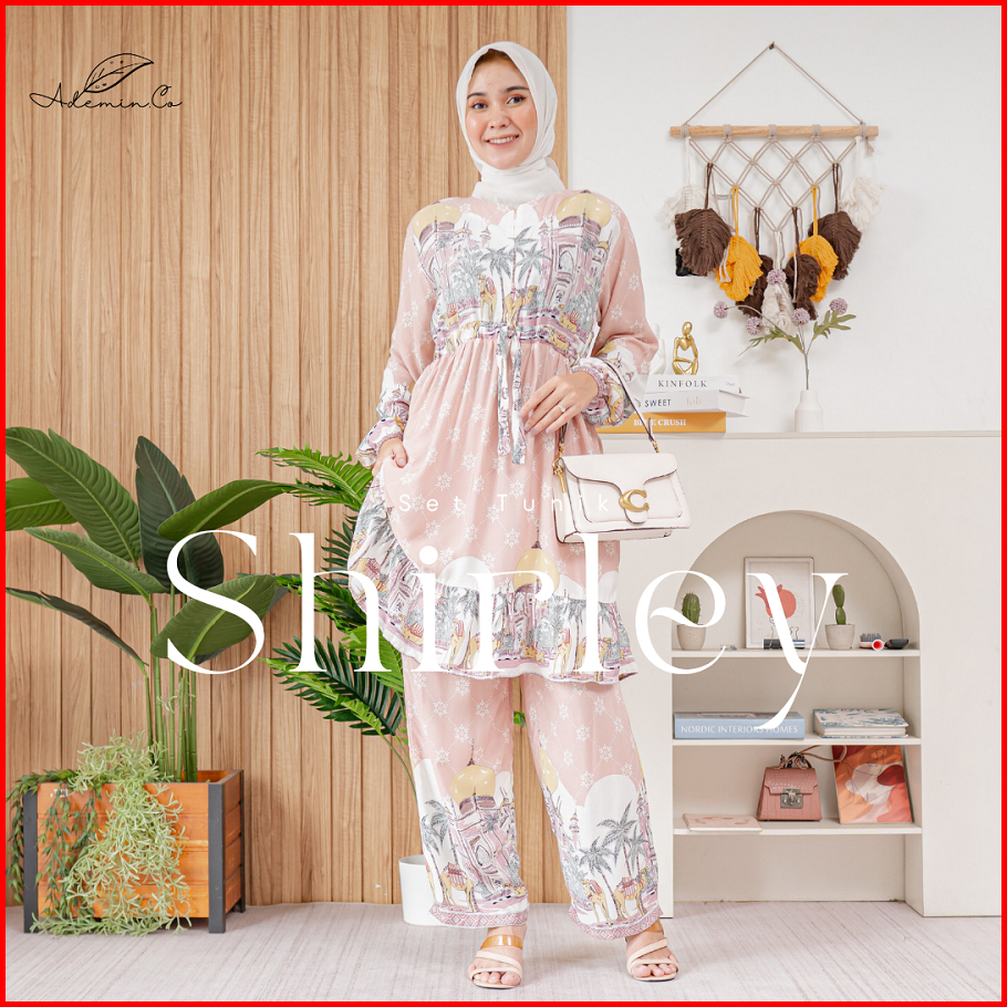 Ademinco Shirley Setelan Tunik Serut Rayon Reactive Pakaian Muslim Wanita Busui Bumil Friendly