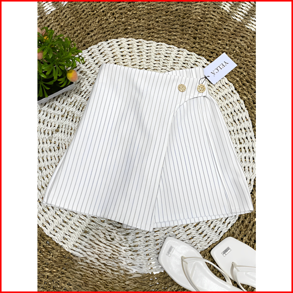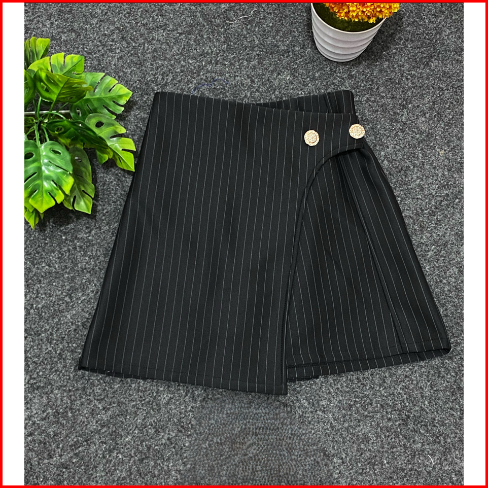 Rok Celana Salur Wanita 6895 Korean Skort Wanita Kancing