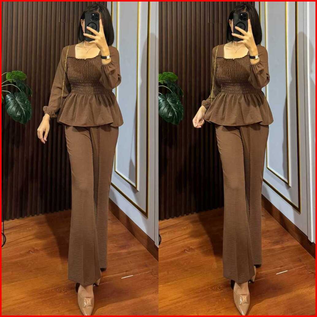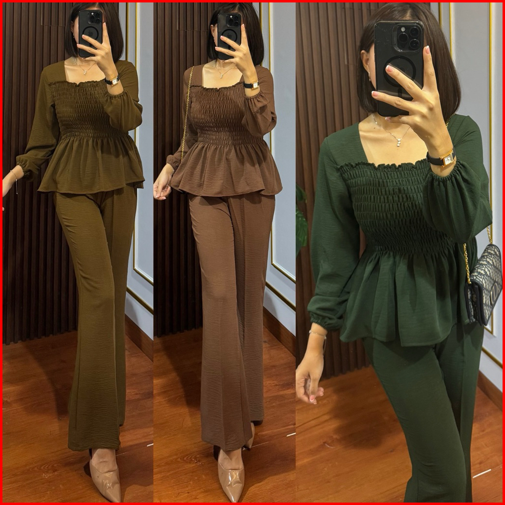 One Set Wanita Kerut Pakaian Setelan Wanita Baju Kerut Crincle Premium