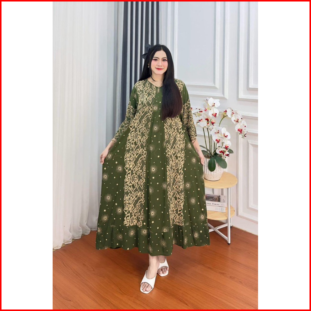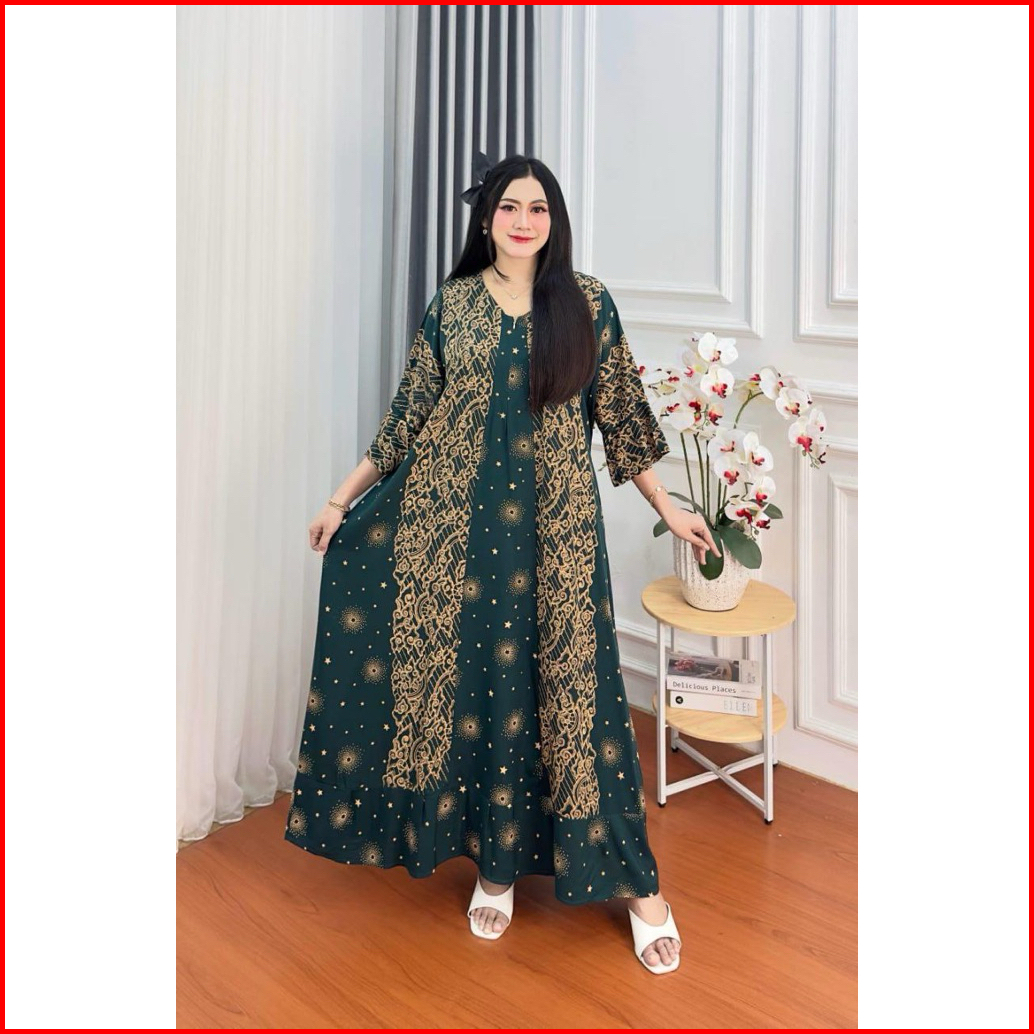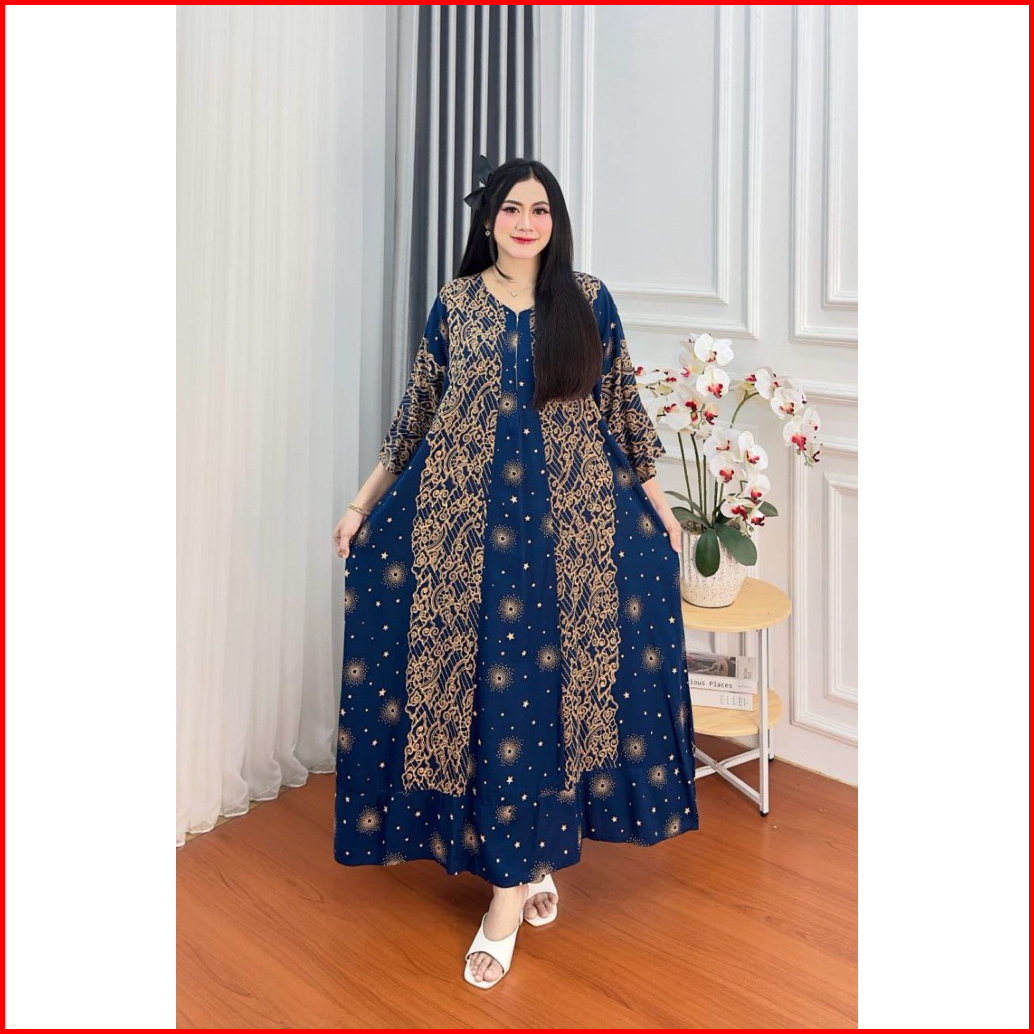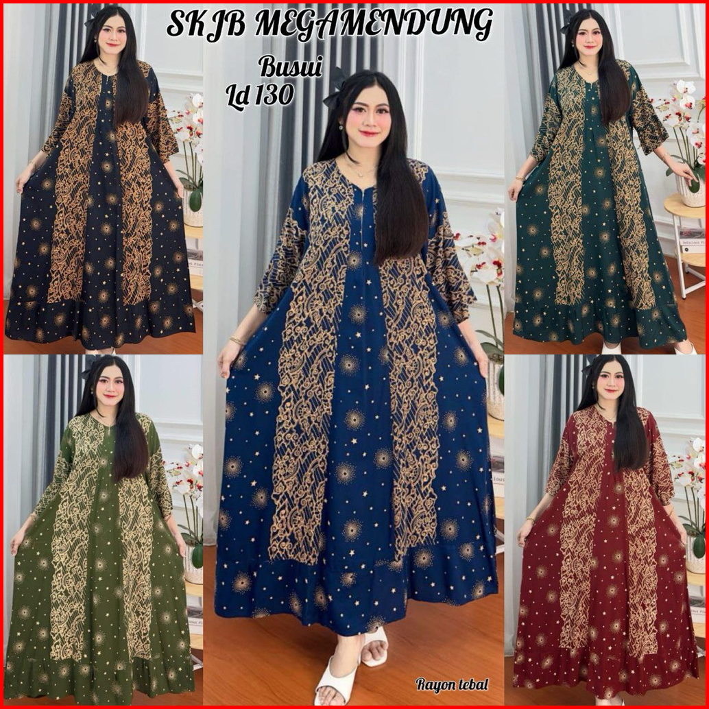 Daster Dress Sekdress Skjb Megamendung Jumbo Ld130 Busui Friendly Rayon Premium Muat Bb50-90kg