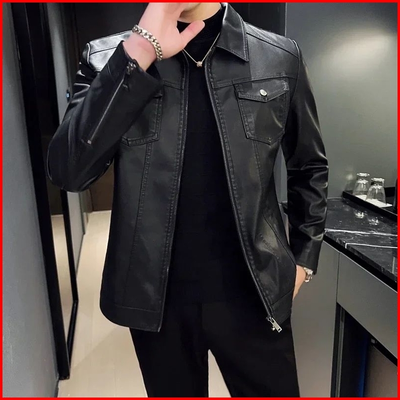 Gudras Volume Jaket Pria Sintetis Viena Jaket Semi Kulit Grenger Mafia Pu Jaket Sintetis Blezer Kerah Kemeja