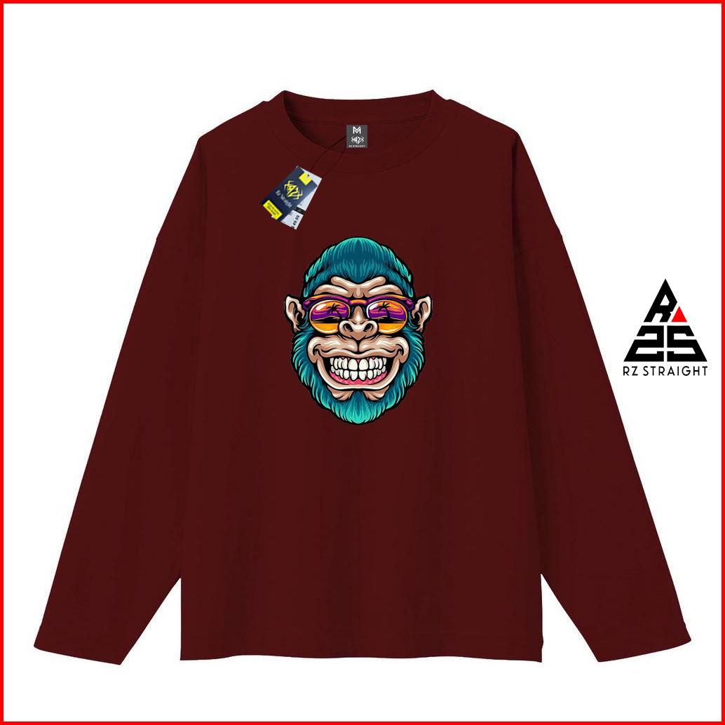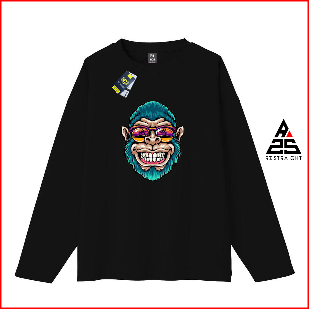 Rz Straight - T-shirt Kaos Lengan Panjang Monkey Face Pria Dan Wanita Casual Formal Quality