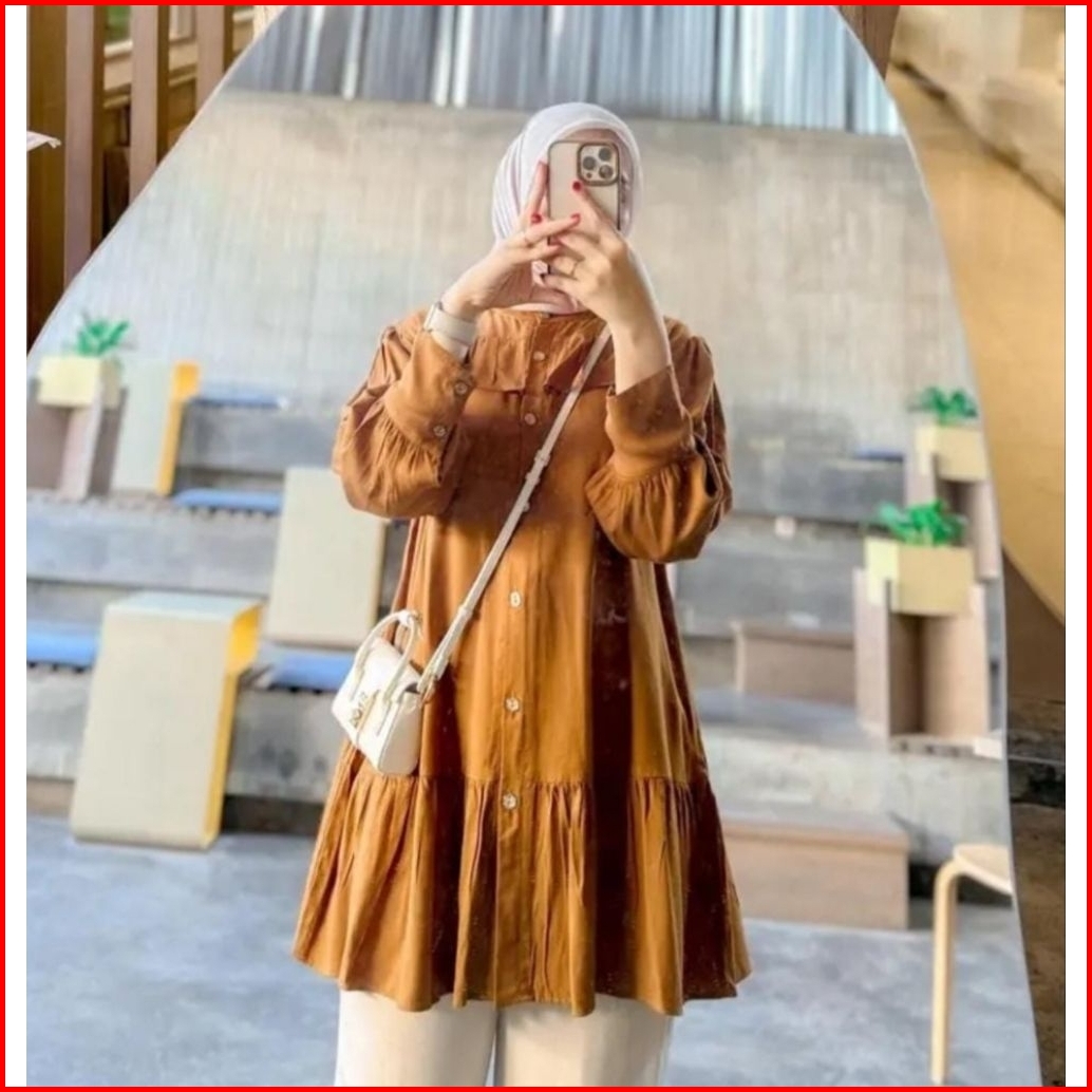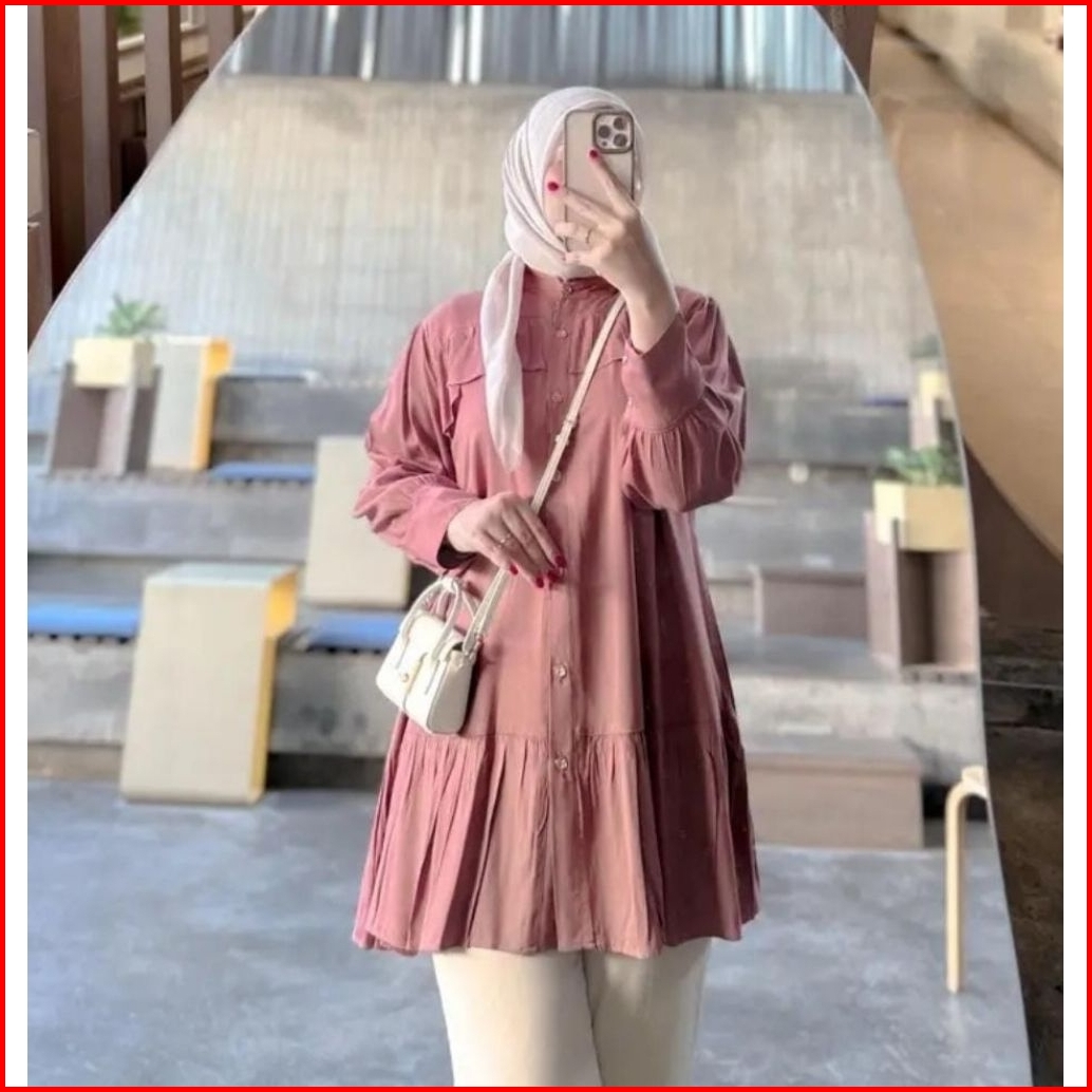 Anin Tunik Basic Ruffle Rayon Twill Warna Beragam