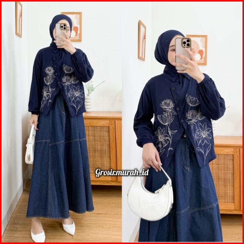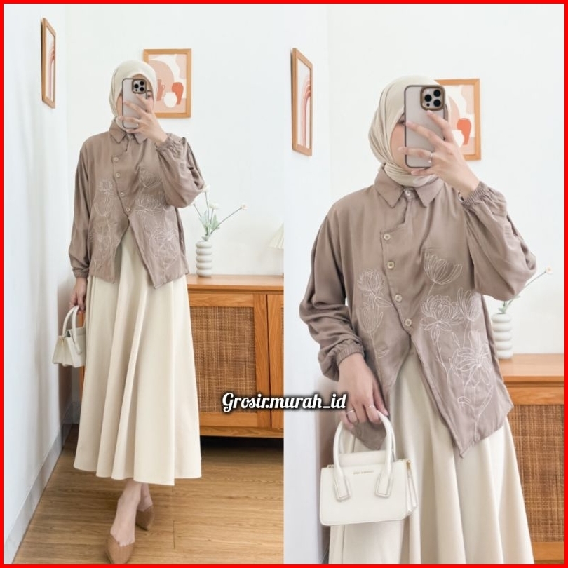 Renata Blouse Bordir Bunga Rayon Twill Berkerah