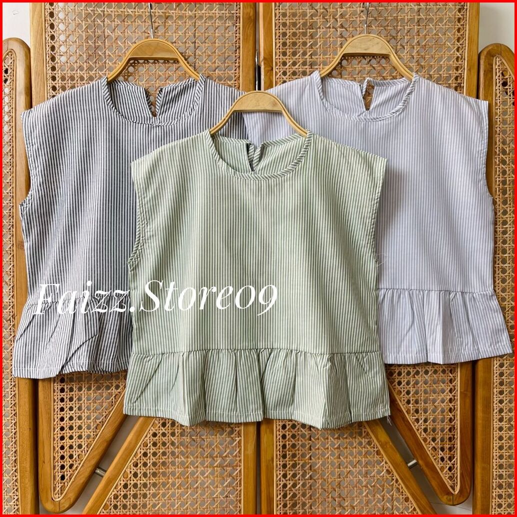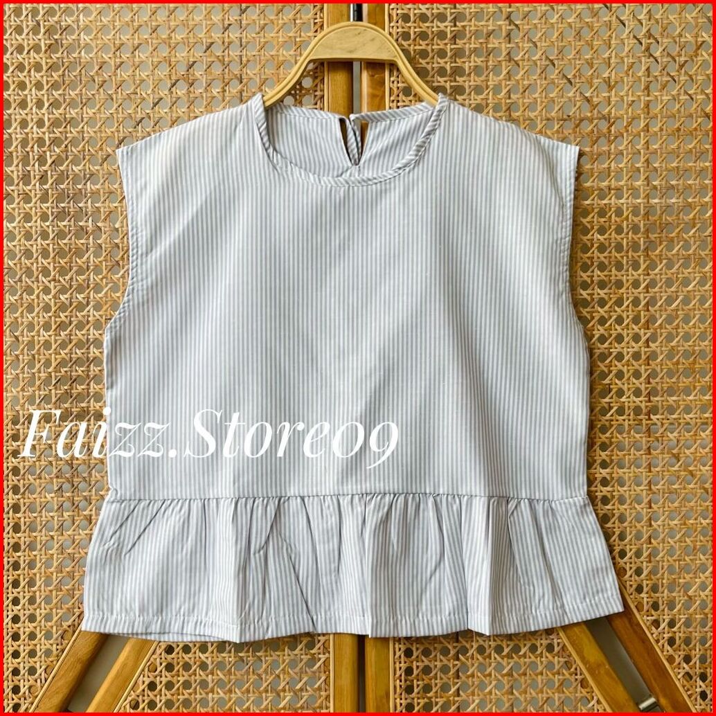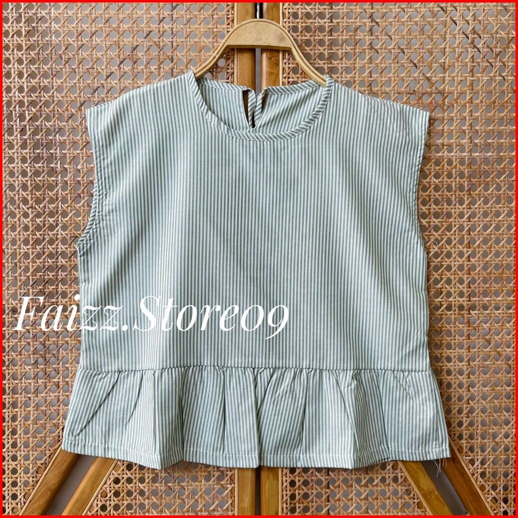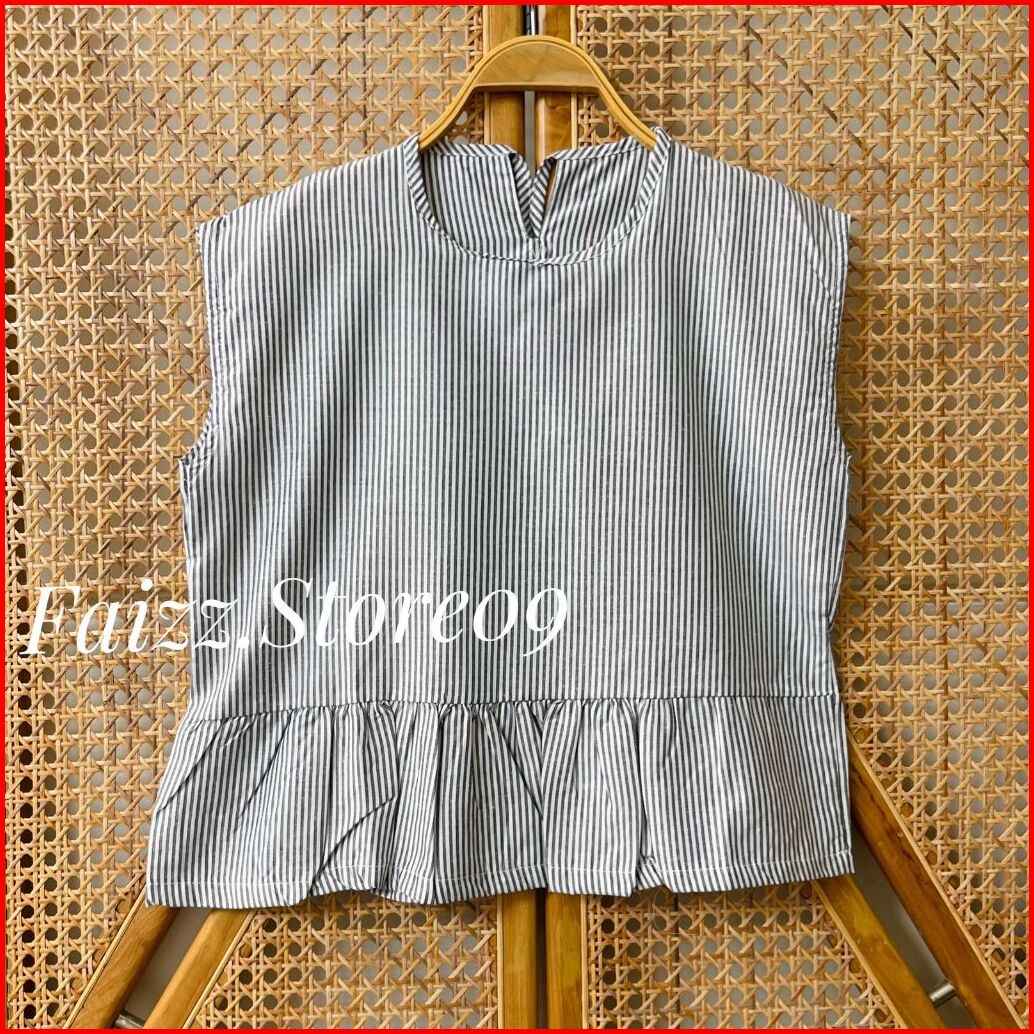 Ririn Vest Inner Top Stripe Tanpa Lengan Atasan Wanita Motif Salur Kecil Ruffle Gaya Korean Style Premium