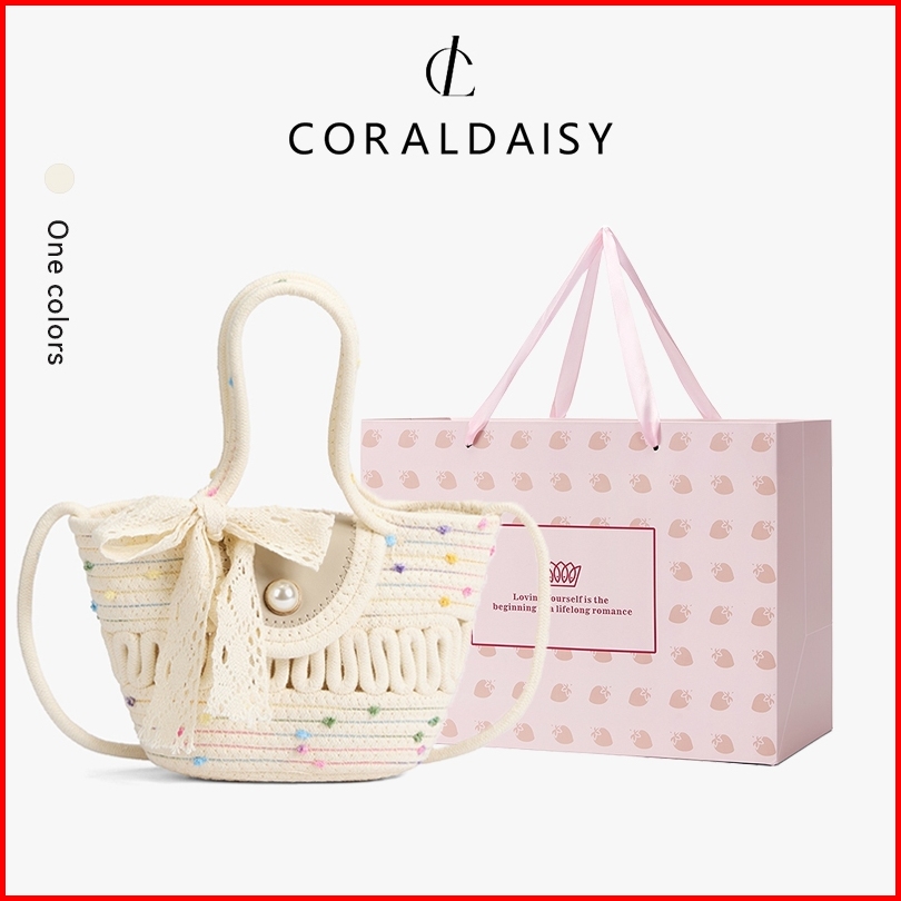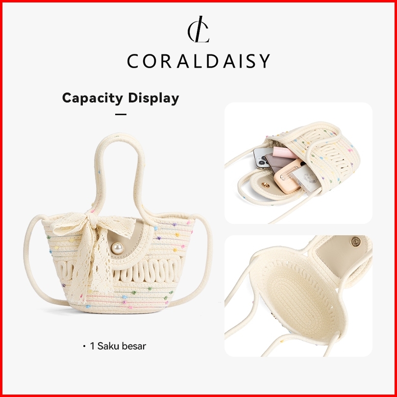 Coraldaisy Tas Wanita 2025 Anyaman Tas Selempang Gesper Mutiara Tas Tangan Tali Panjang Sling Bag
