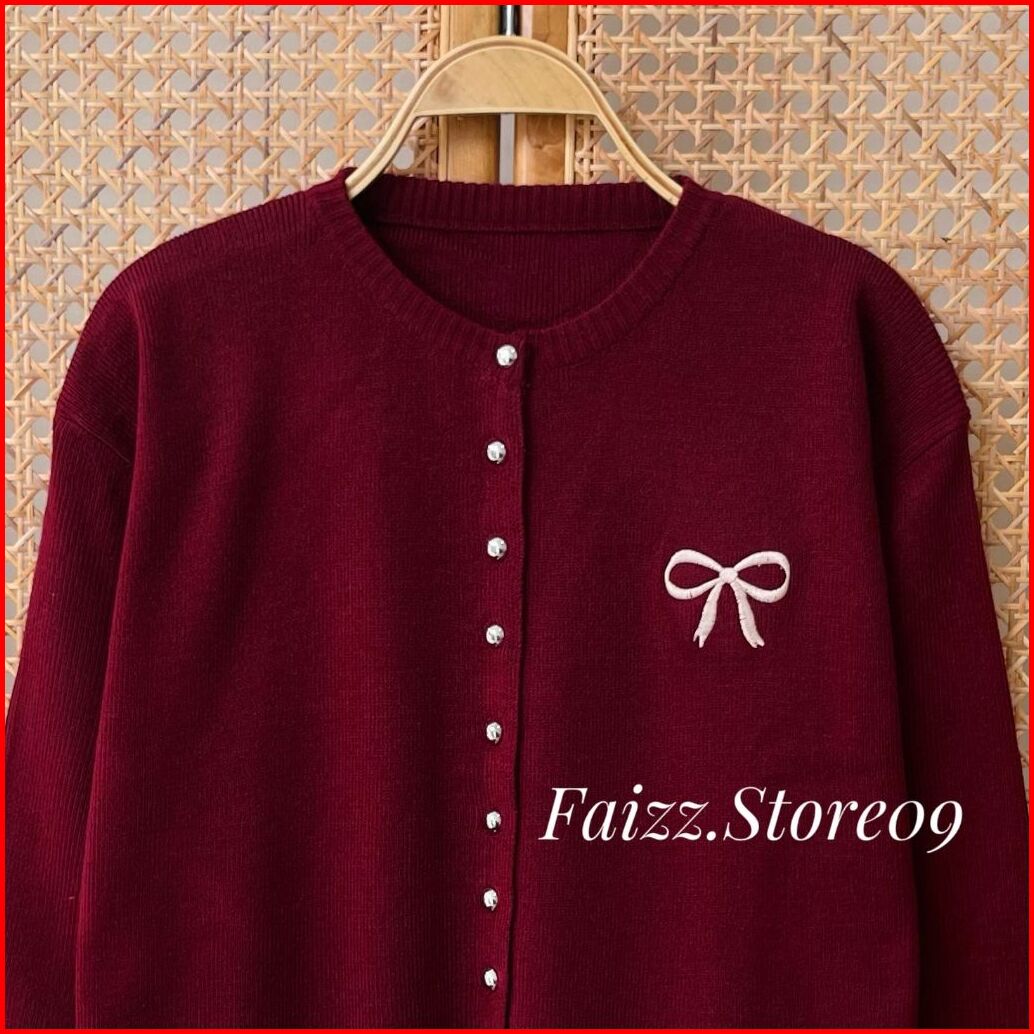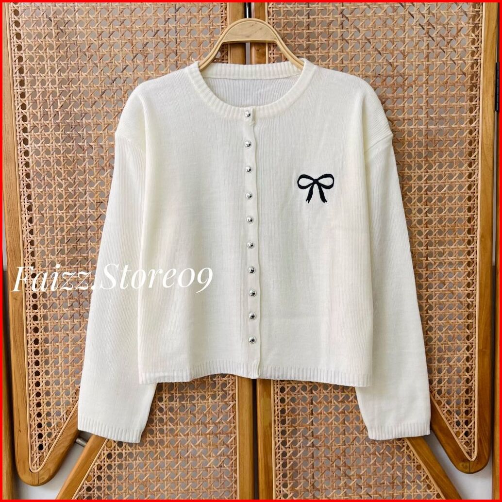Imelda Cardy Knit - Atasan Cardigan Rajut Kancing Motif Pita Simple Bahan Lembut Korean Style