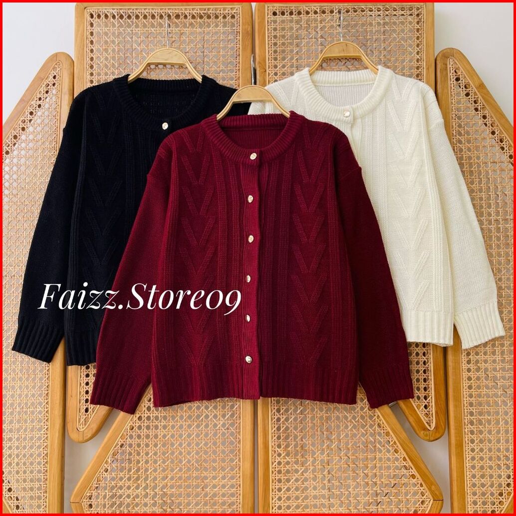Lanni Cardy Knitwear - Outer Atasan Cardigan Rajut Wanita Kancing Motif Sido Korean Style Premium