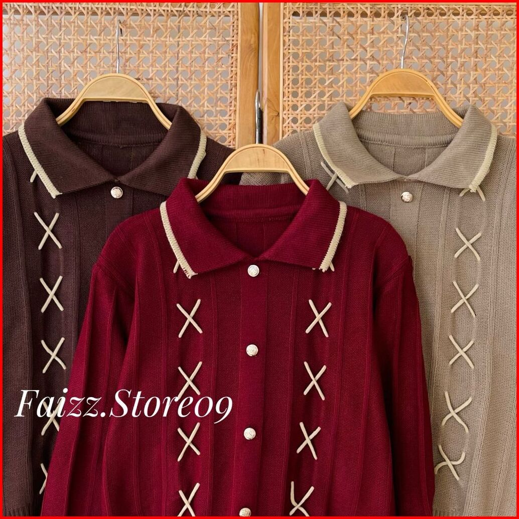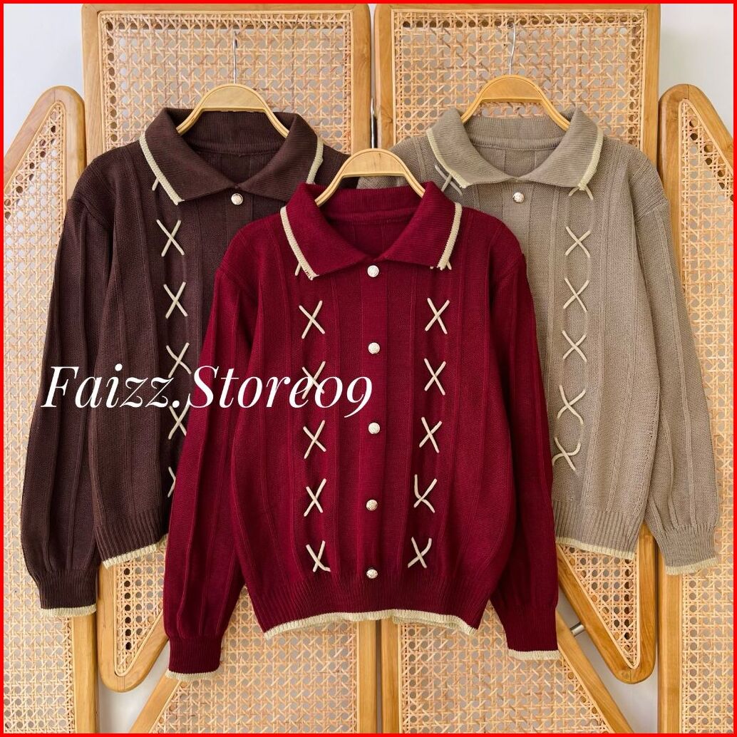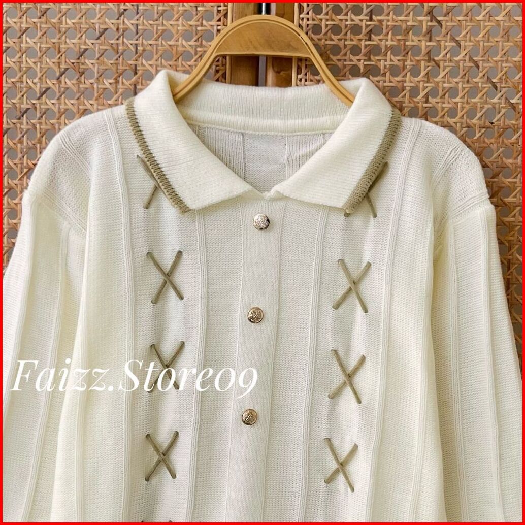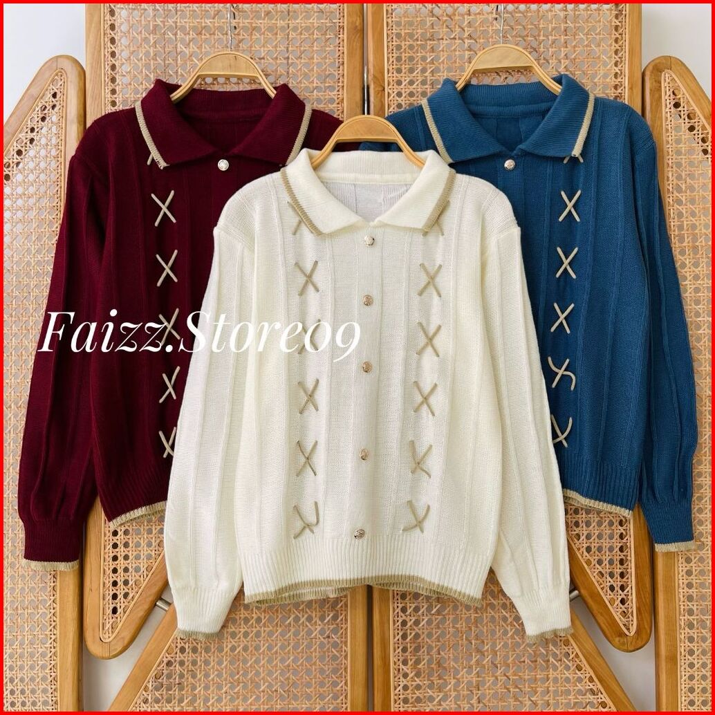 Zainab Blouse - Atasan Sweater Rajut Kerah Polo Wanita Motif Tali Kur Kancing Korean Style Premium