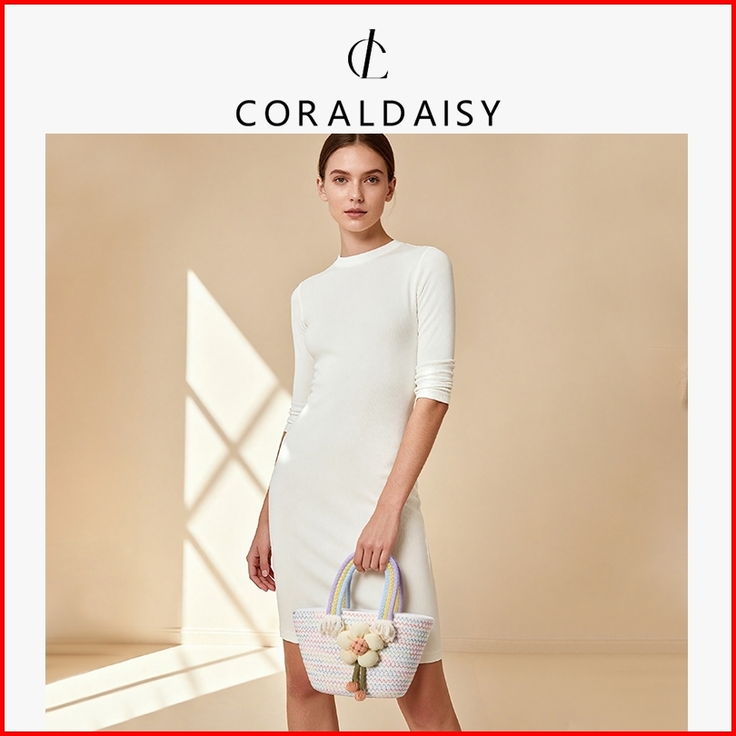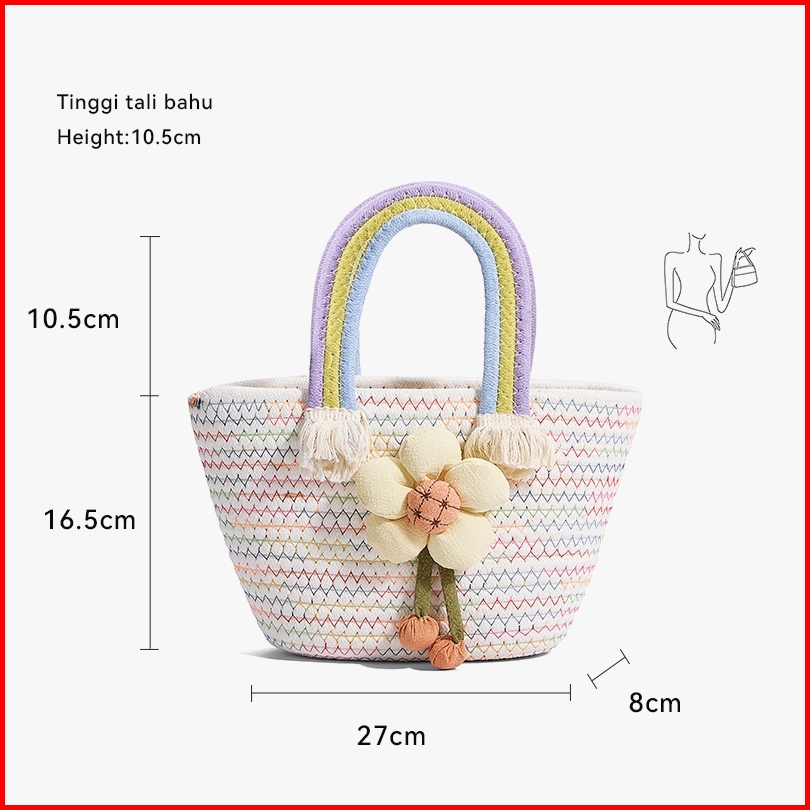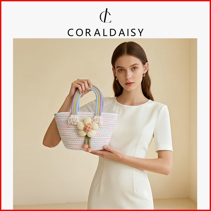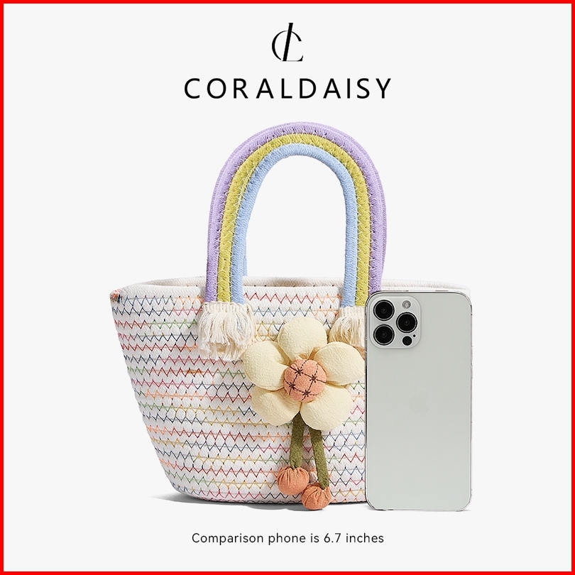 Coraldaisy Tas Wanita 2025 Terbaru Berwarna-warni Anyaman Handbag Tas Jinjing Lucu Bunga Tas Tangan