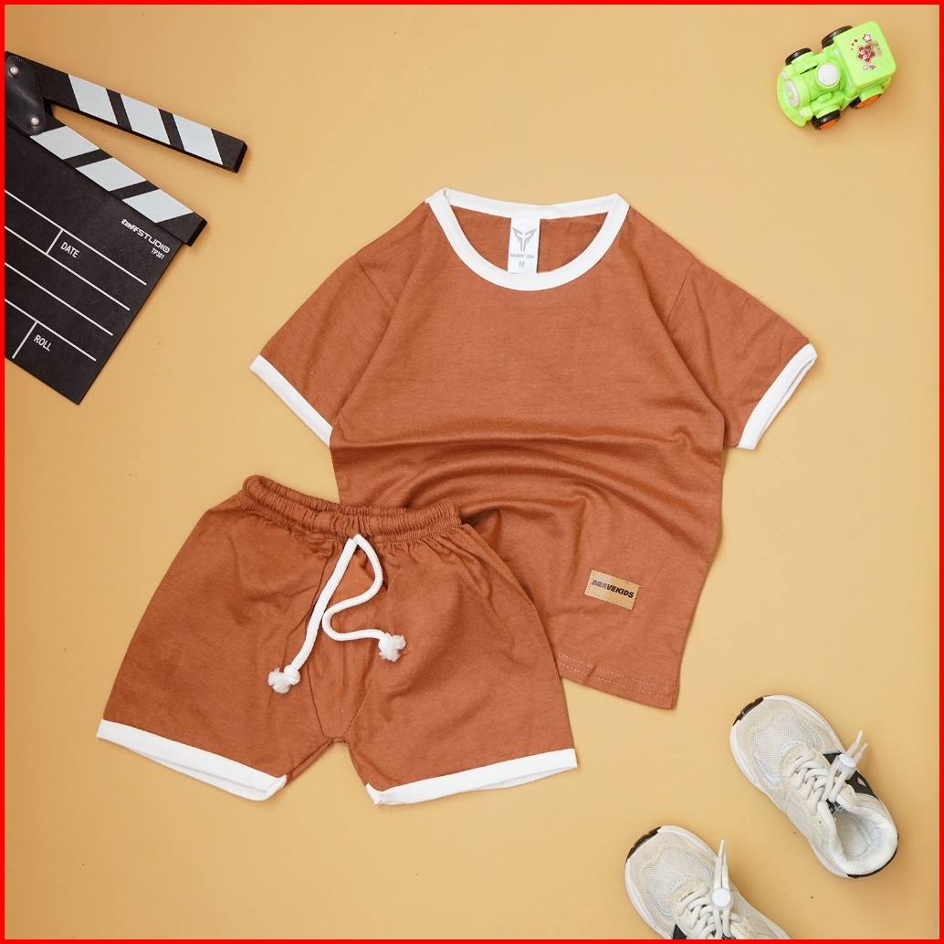 Bravekids - Setelan Anak Laki Laki Premium 1 - 5 Tahun One Set Polos Anak Cotton Combed 24s Fashion
