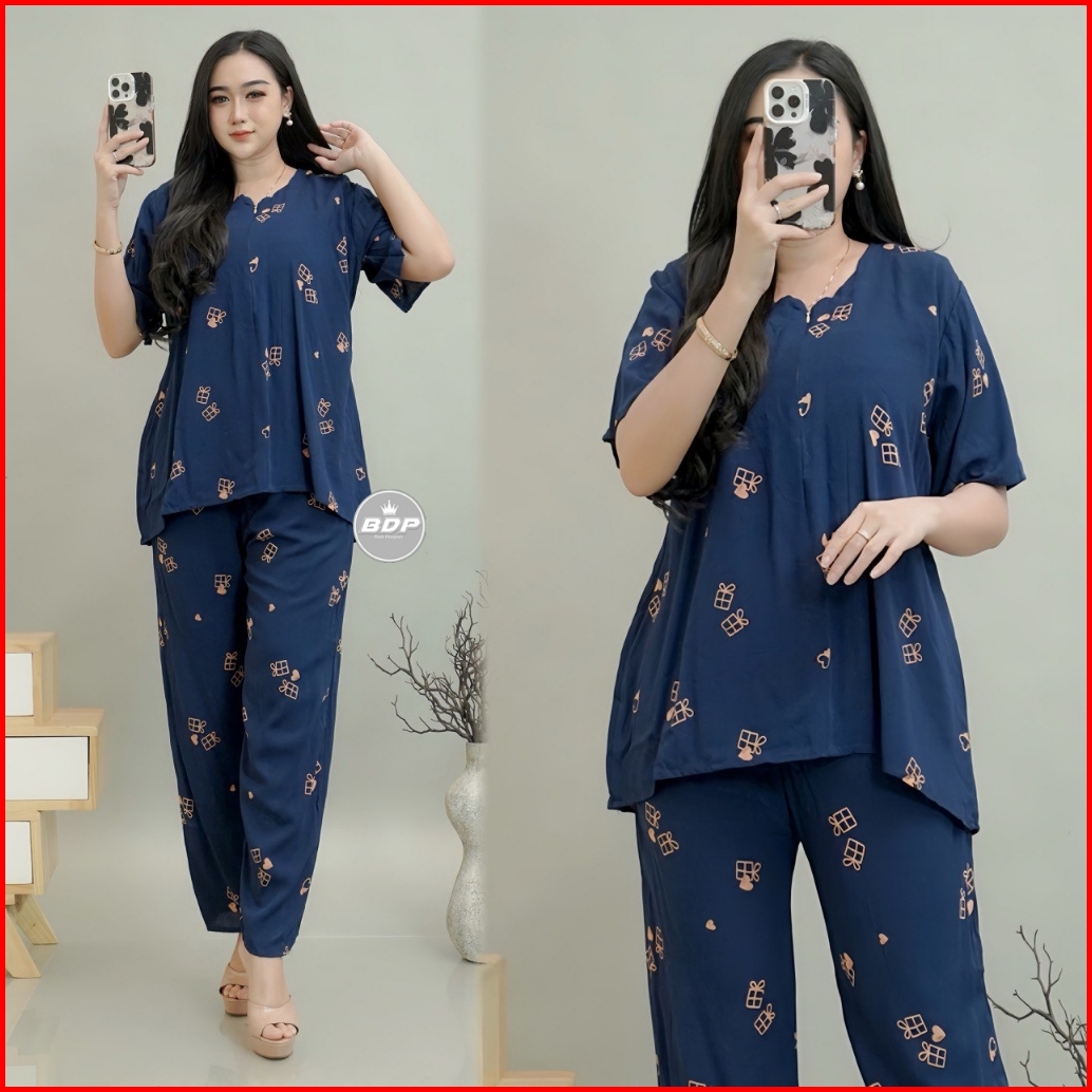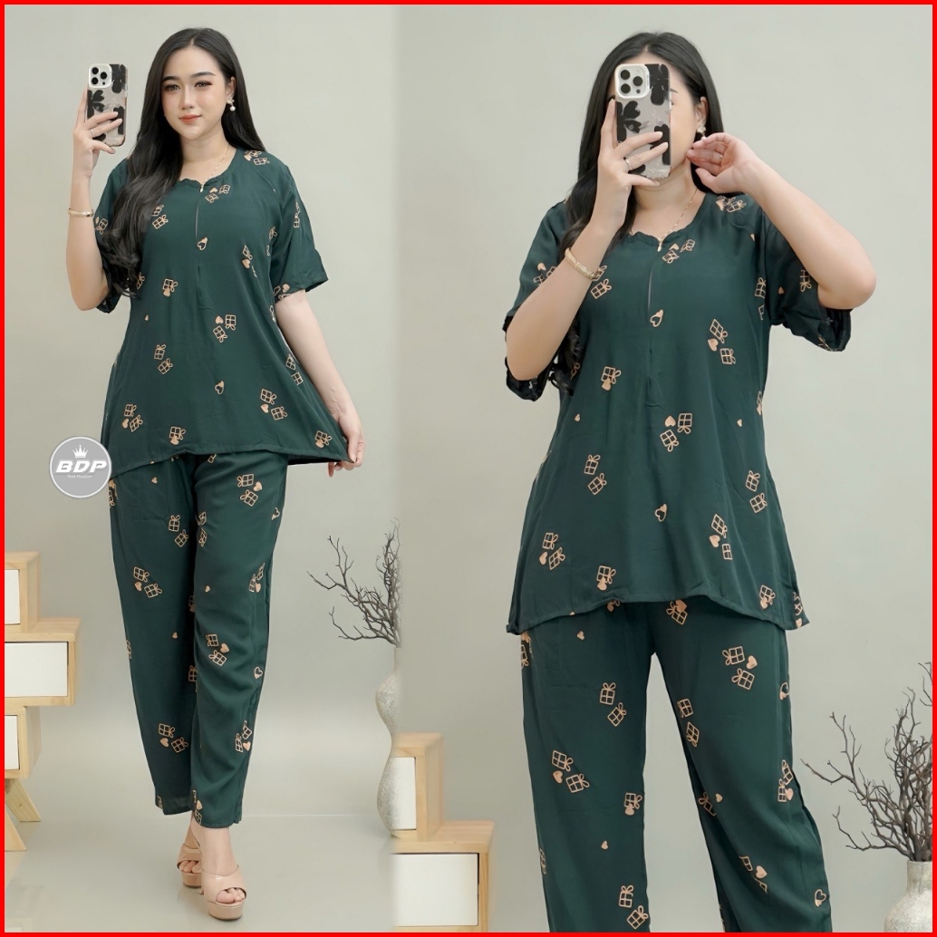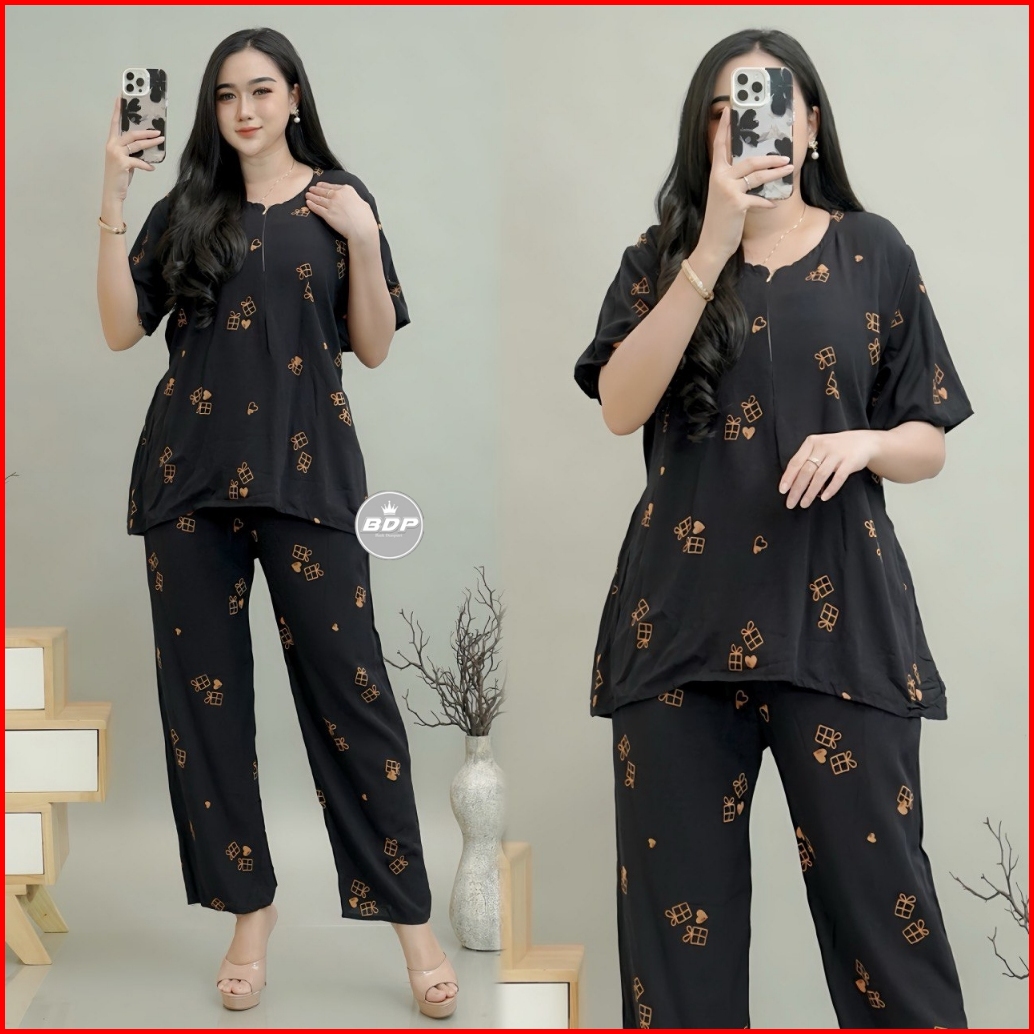 Dianputri - One Set Wanita Rayon Busui Resleting Depan Setelan Wanita Kekinian Stelan Wanita