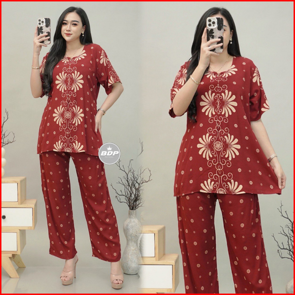 Dianputri - One Set Wanita Rayon Busui Resleting Depan Setelan Wanita Kekinian Stelan Wanita