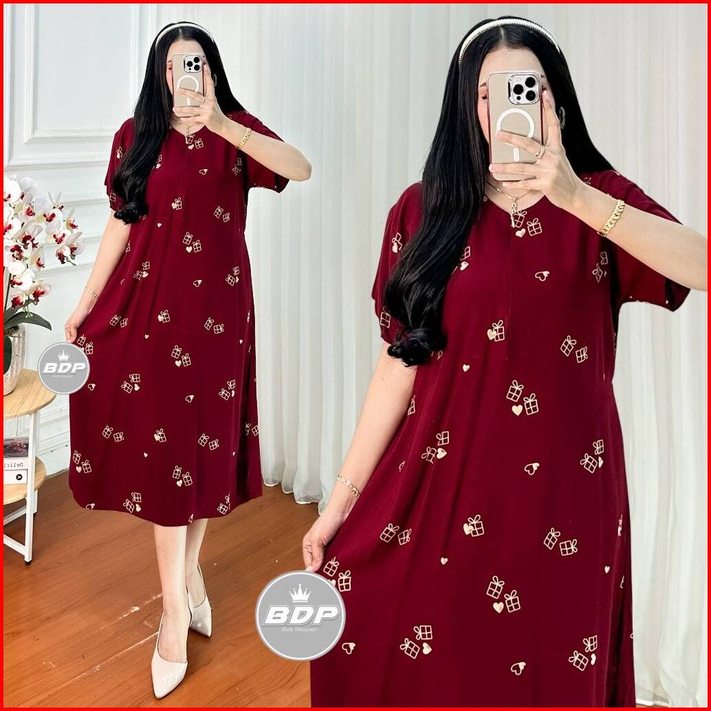 Dianputri - Daster Wanita Motif Kado Rayon Grade A Busui Resleting Depan Baju Tidur Daster Kekinian