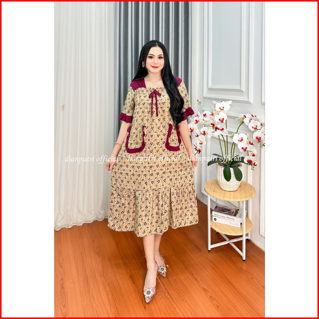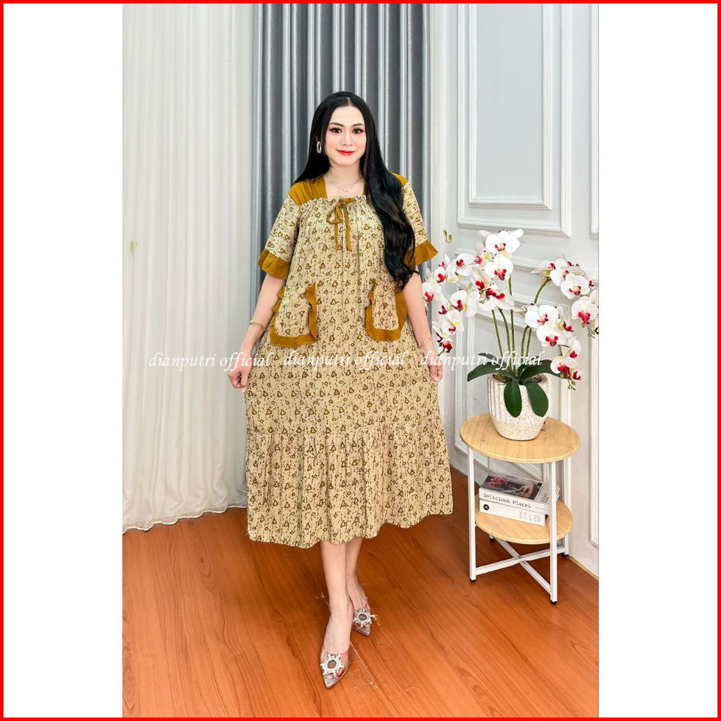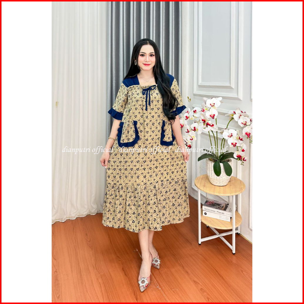 Dianputri - Dress Marisa Rayon Motif Kekinian Panjang Semata Kaki Bumil Busui Friendly