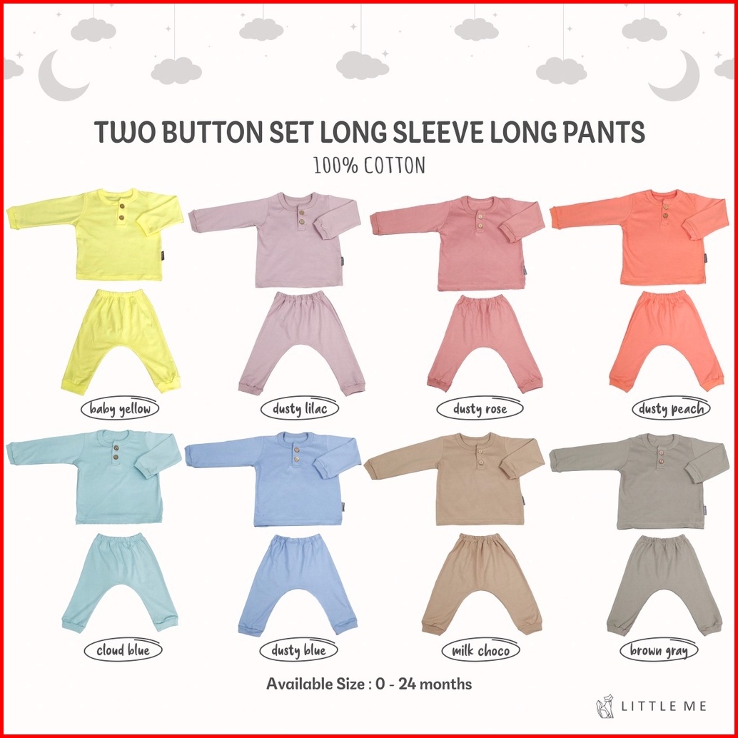 Little Me - Two Button Set Long Sleeve Long Pants Piyama Bayi Tangan Panjang Setelan Bayi Kancing
