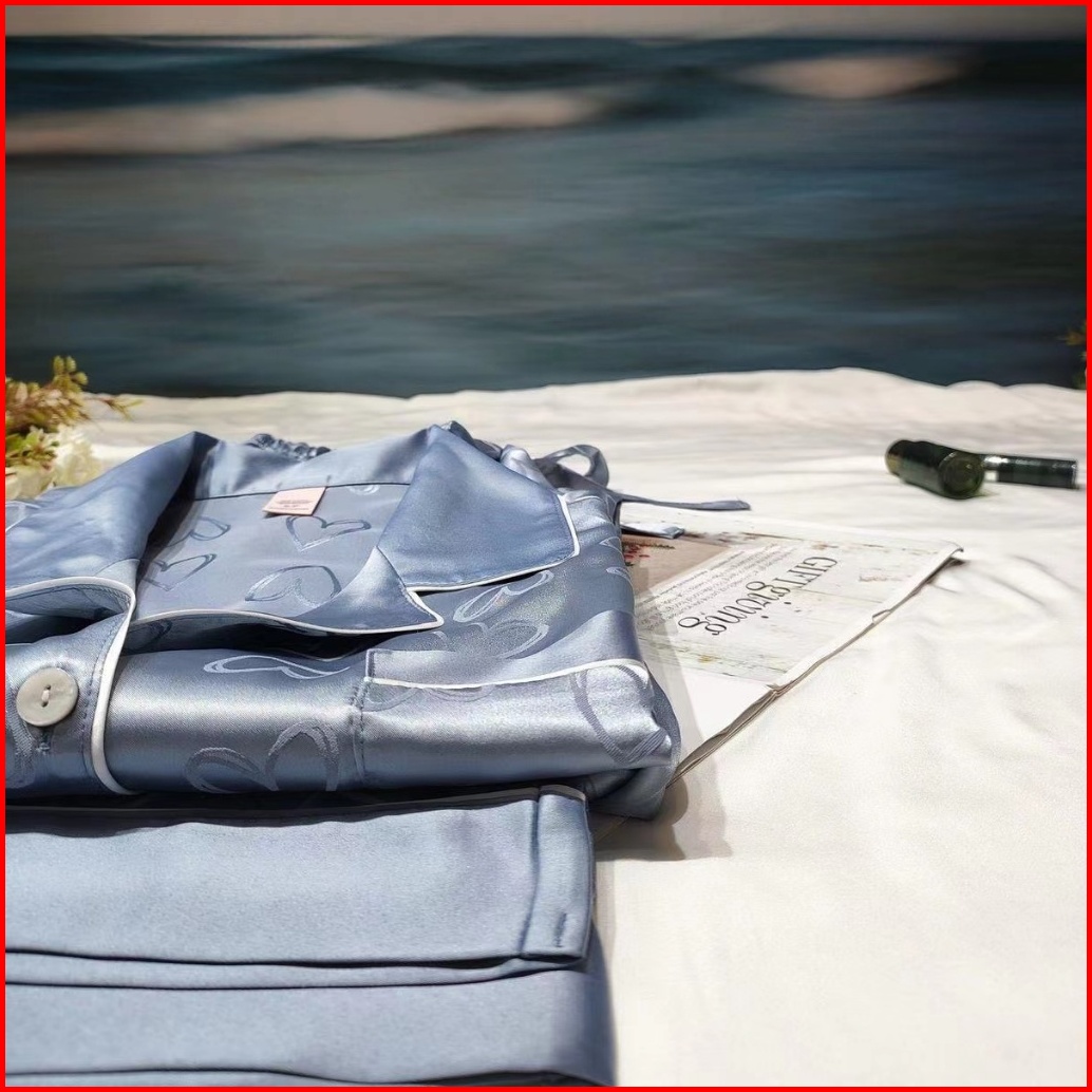 Piyama Wanita Sutra Es Merah Muda Piyama Pola Cinta Piyama Satin Biru