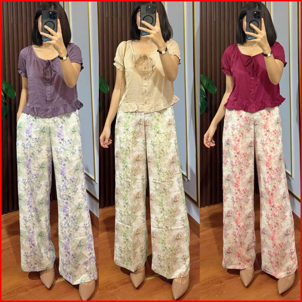 Pakaian Setelan Wanita One Set Premium Korea Setelan Celana Panjang Rayon Twill