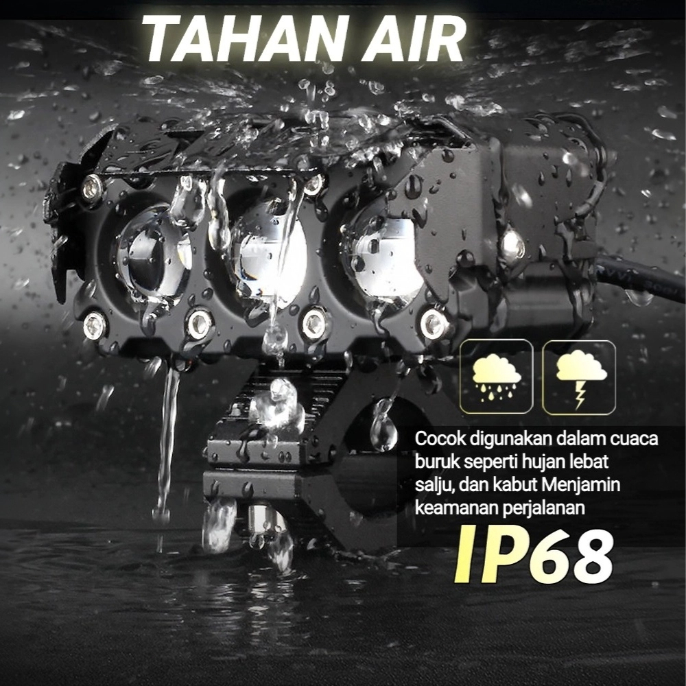 Clivo Lampu Tembak Laser Led 3 Mata Super Terang Hi Low Putih Kuning Full Aluminium Untuk Motor Mobil Foglamp Lampu Proj