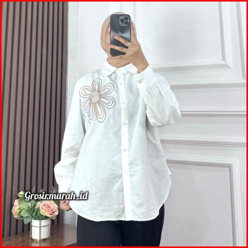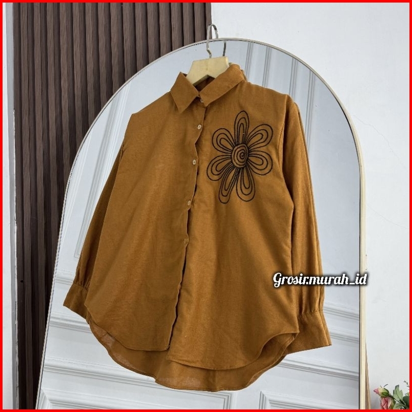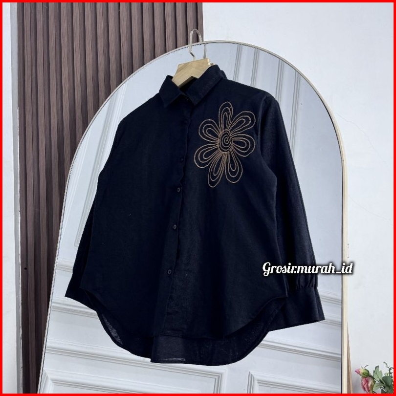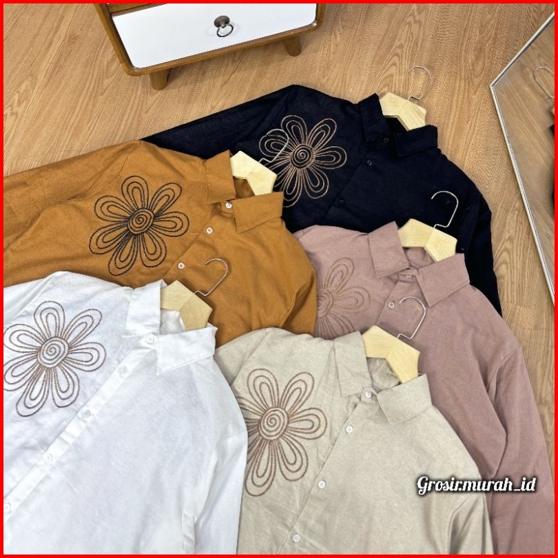 Luffy Blouse Bordir Linen Rami Berkerah Multicolor
