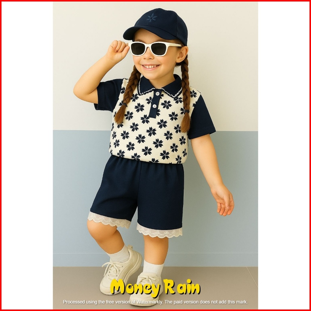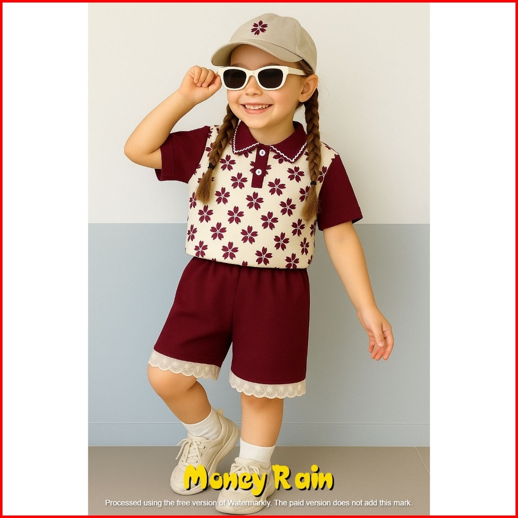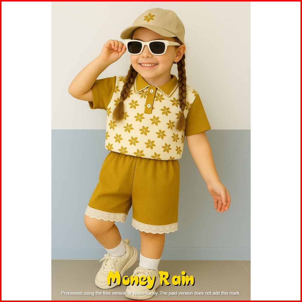 Setelan Anak Perempuan Usia 0-6 Tahun Motif Celana Pendek Bunga