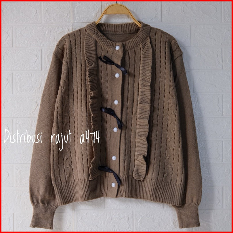 Tm 22 Cardigan Rajut Pita Motif Renda Wanita Korean Stayle