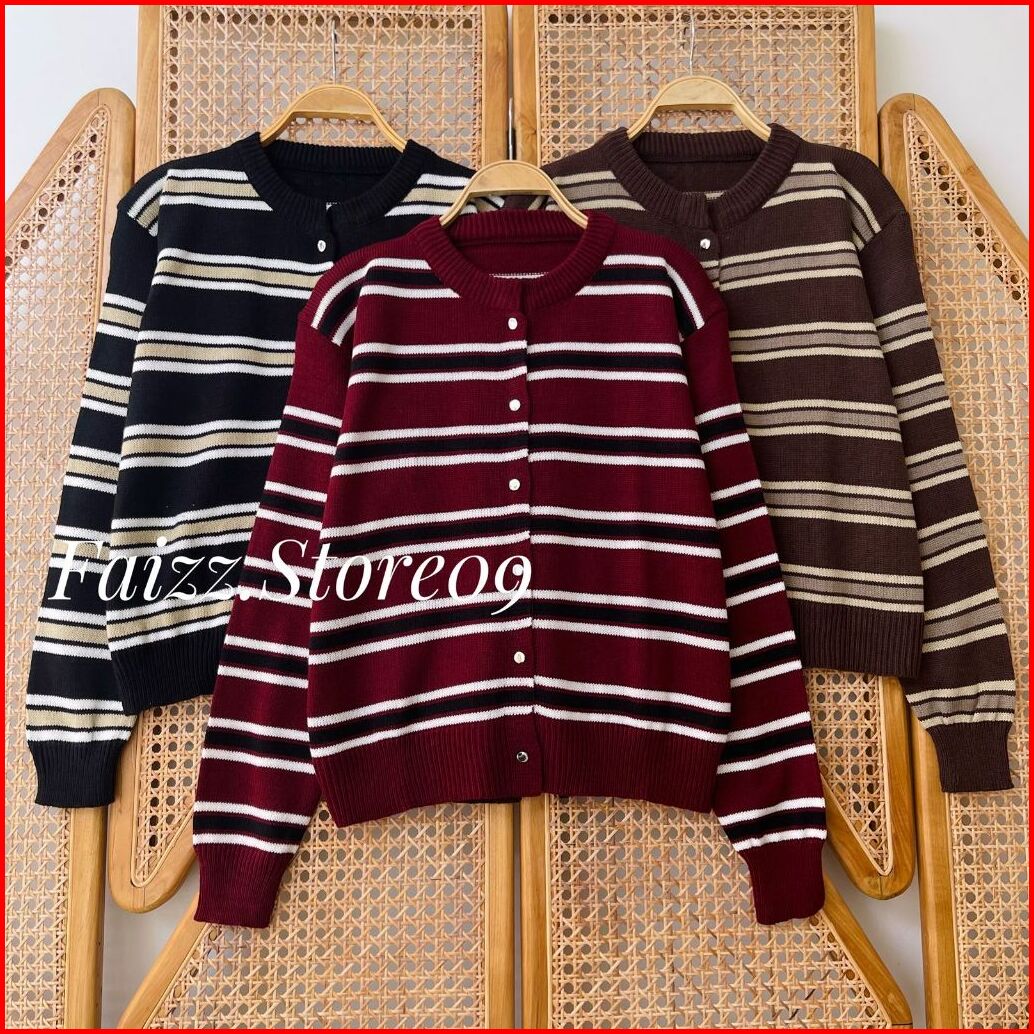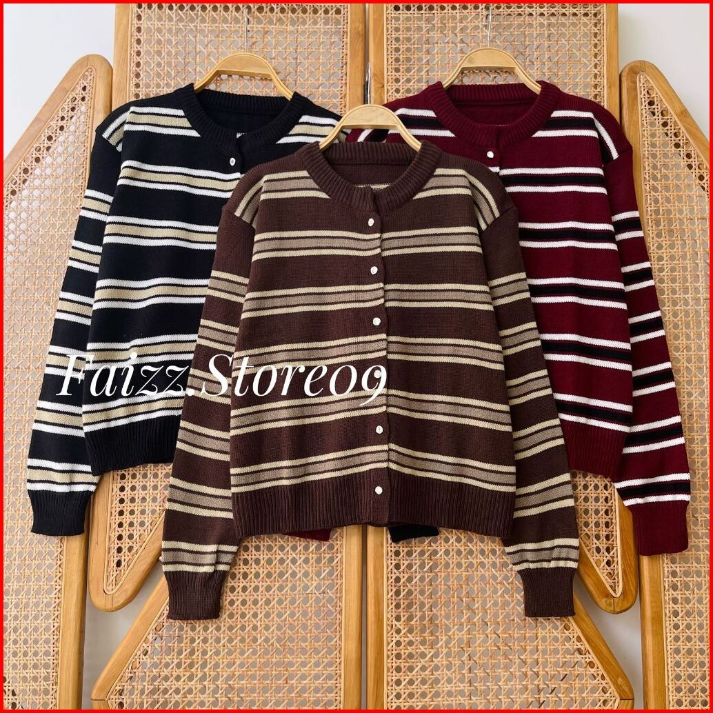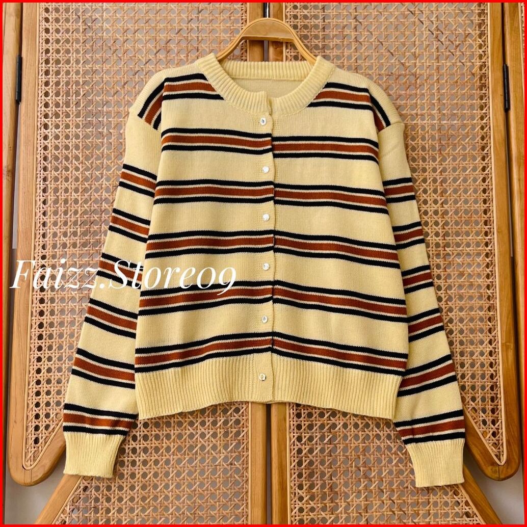 Arloot Cardy Knitwear - Atasan Cardigan Rajut Kancing Wanita Motif Stripe Baju Lucu Korean Style Premium