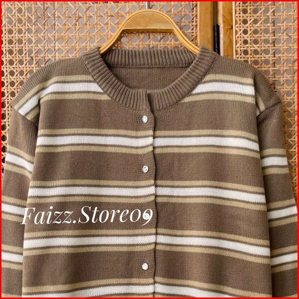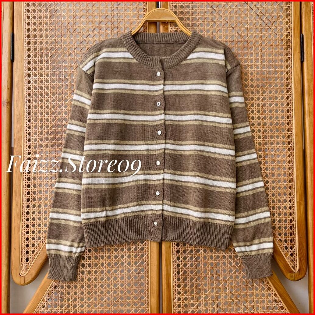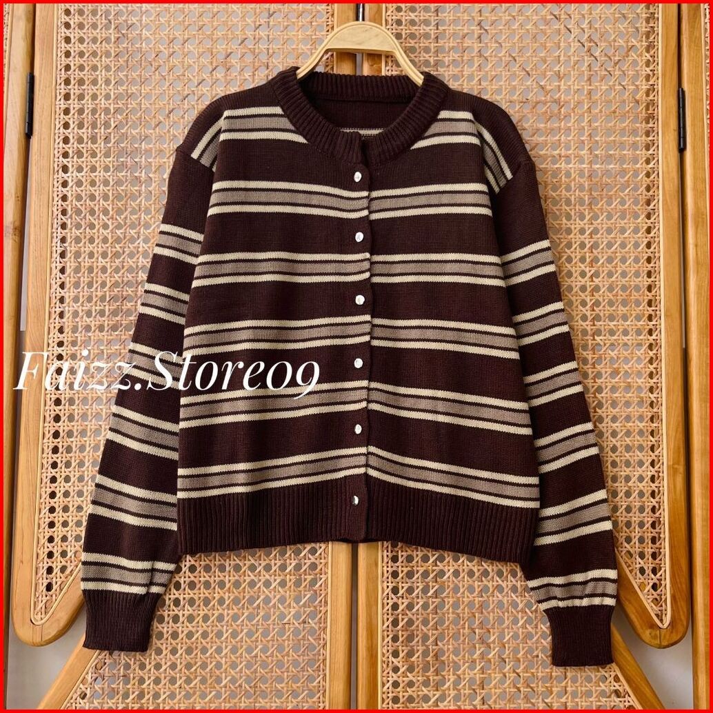 Arloot Cardy Knitwear - Atasan Cardigan Rajut Kancing Wanita Motif Stripe Baju Lucu Korean Style Premium
