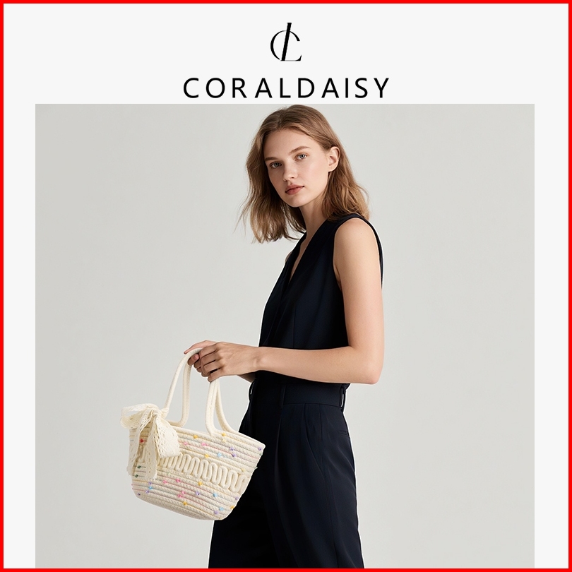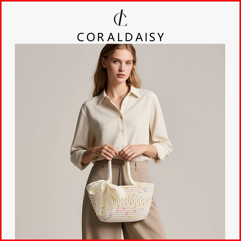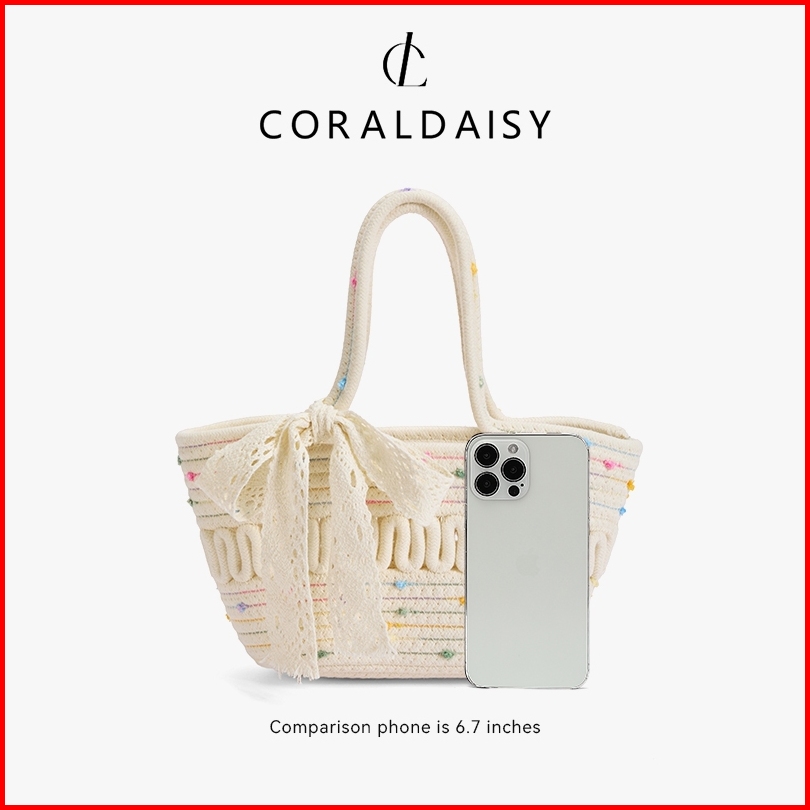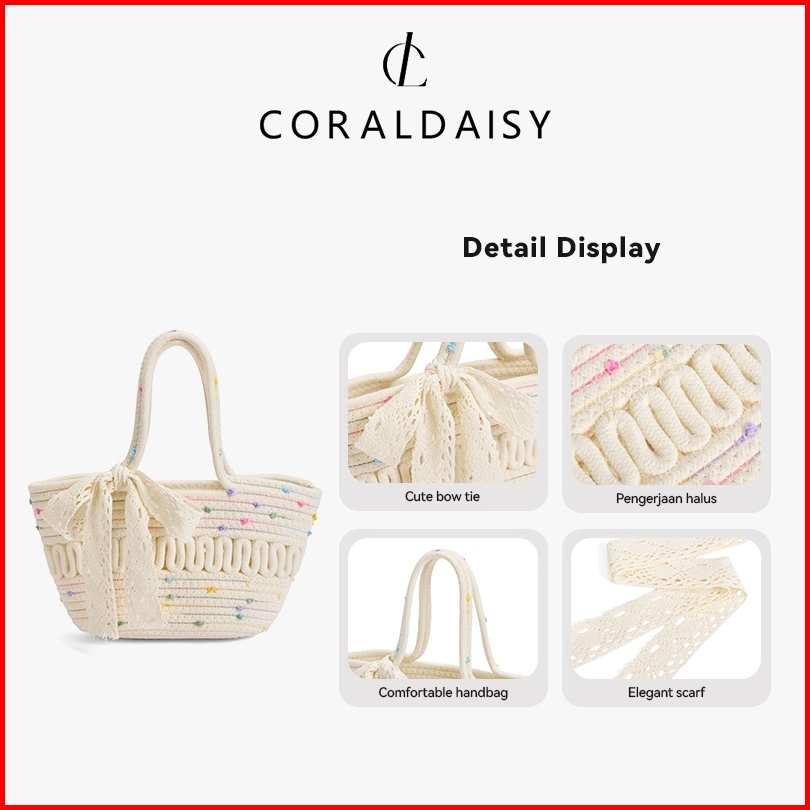 Coraldaisy Tas Wanita 2025 Terbaru Tas Anyaman Elegan Pita Handbag Cute Titik Pewarnaan Tas Tangan