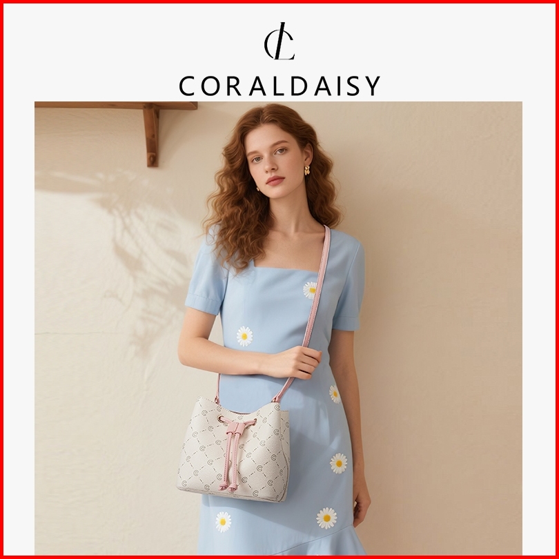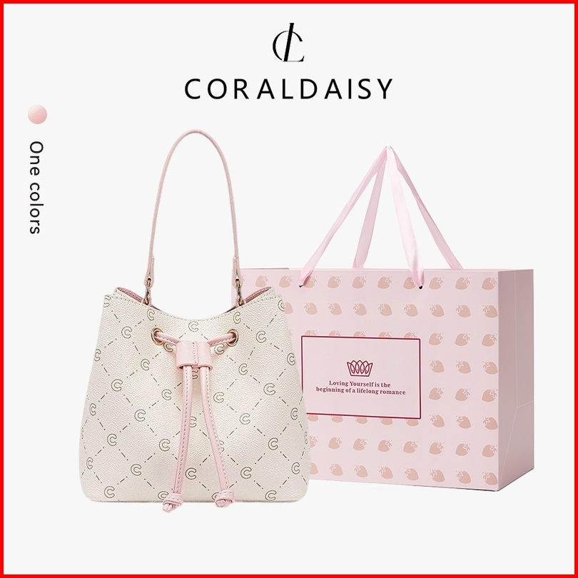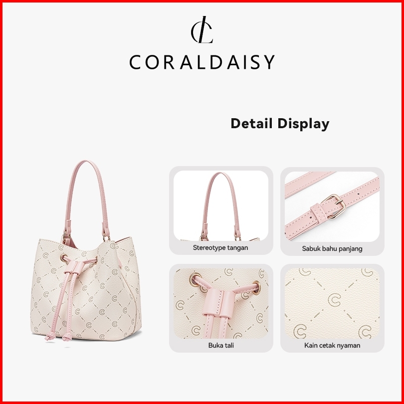 Coraldaisy Tas Wanita 2025 Terbaru Serut Handbag Elegan Lucu Ember Tas Tangan Tali Panjang Shoulder Bag