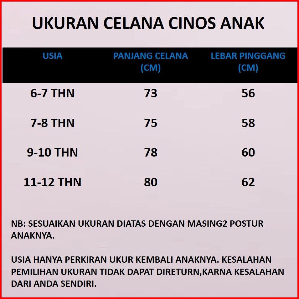 Celana Cinos Panjang Anak Usia 6-12 Tahun Street Casual Premium