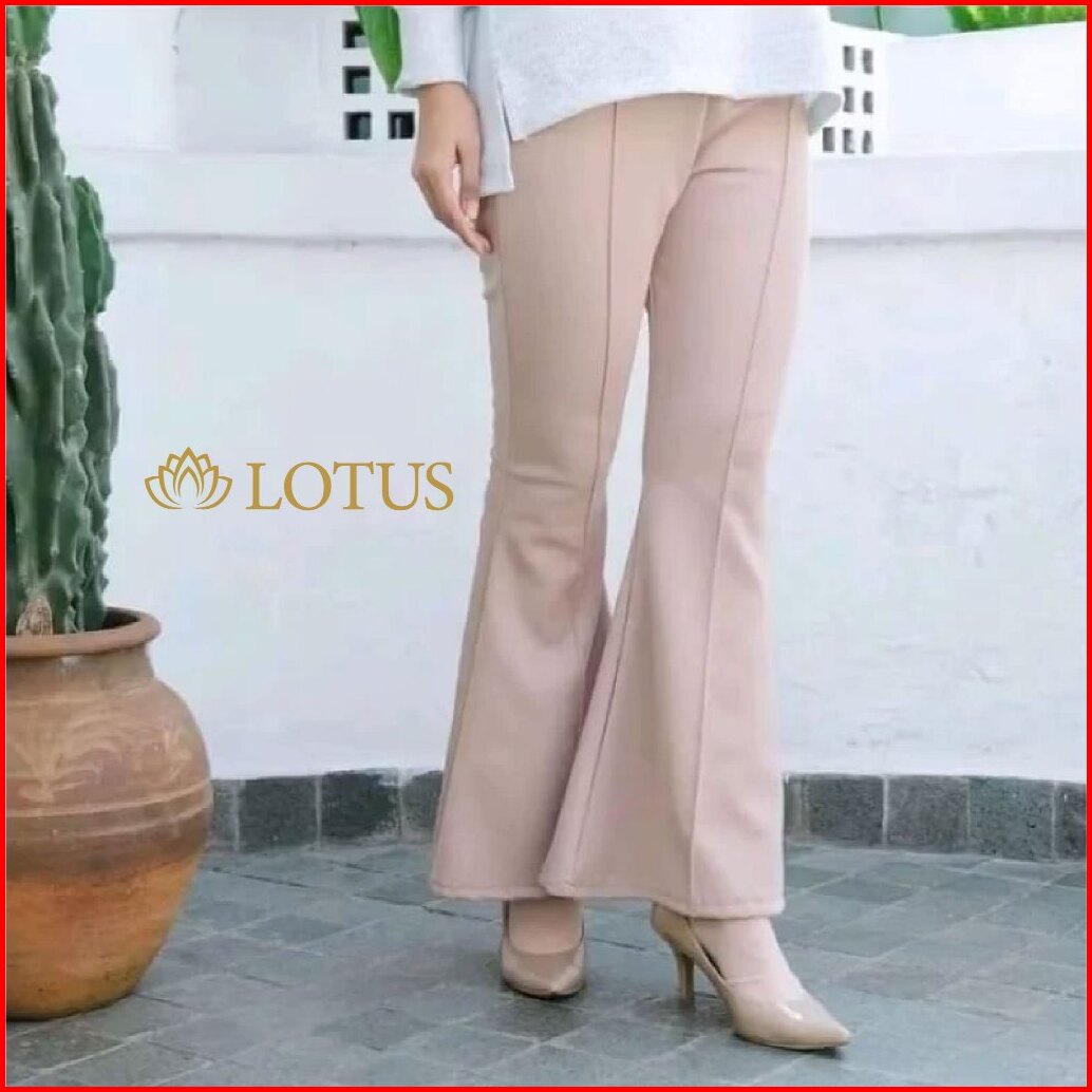 Lotus - Flare Pants Cutbray Wanita Highwaist Scuba Premium Stretch