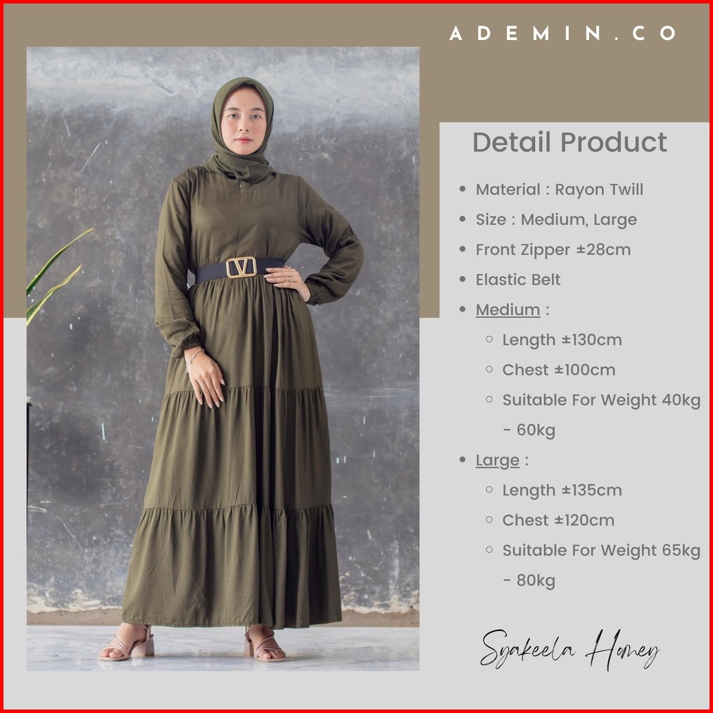 Ademinco Syakeela Gamis Polos Rayon Twill Pakaian Muslim Wanita Busui Bumil Friendly