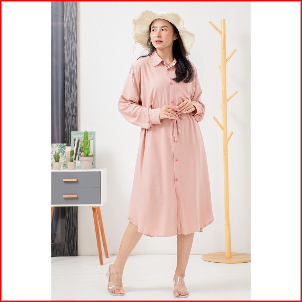 Ademinco Meera Tunik Kancing Polos Rayon Reactive Atasan Muslim Wanita Adem
