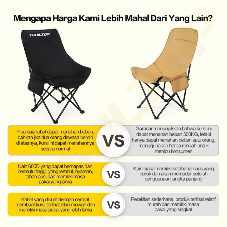 Kursi Lipat Outdoor Trail Top Outdoor Lipat Sandaran Tinggi Camping