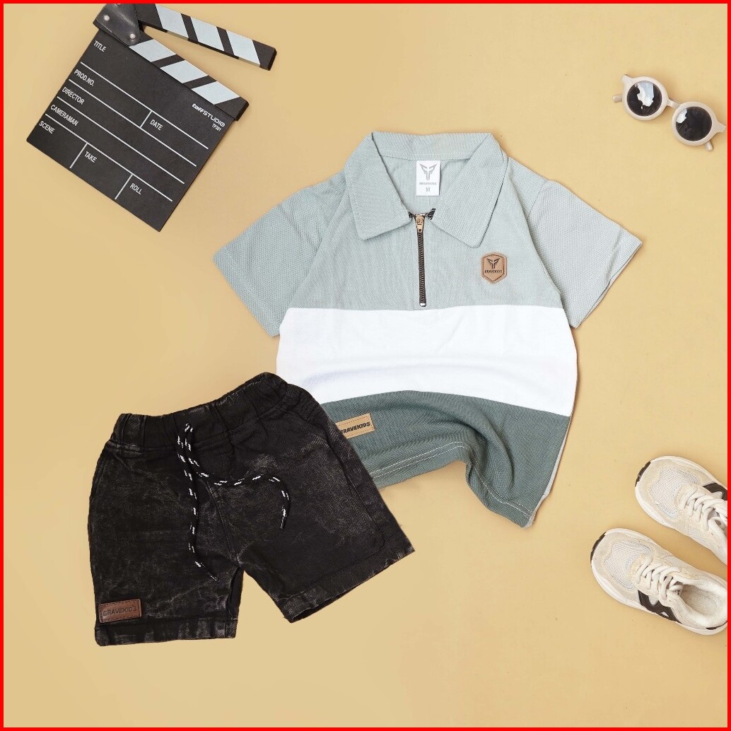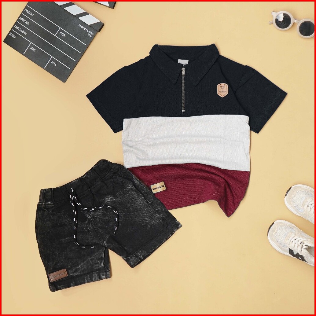 Bravekids - Panel Shirt Kaos Setelan Anak Laki Laki 1 - 5 Tahun Cotton Pique Lacos Kombinasi Distro Premium