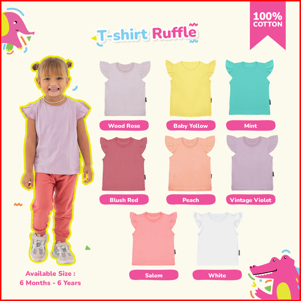 Little Me - Kaos Ruffle Polos Anak Perempuan Usia 6 Bulan - 6 Tahun