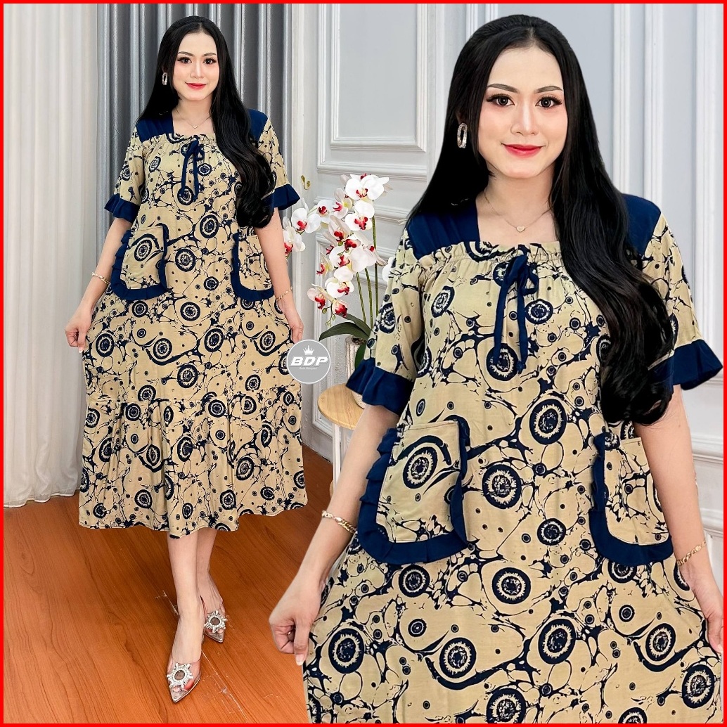 Dianputri - Dress Marisa Rayon Motif Kekinian Panjang Semata Kaki Bumil Busui Friendly