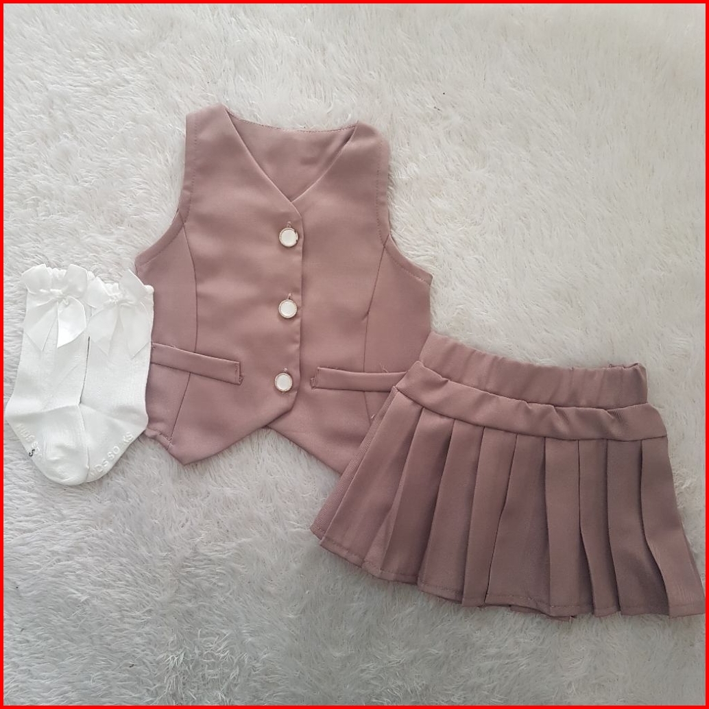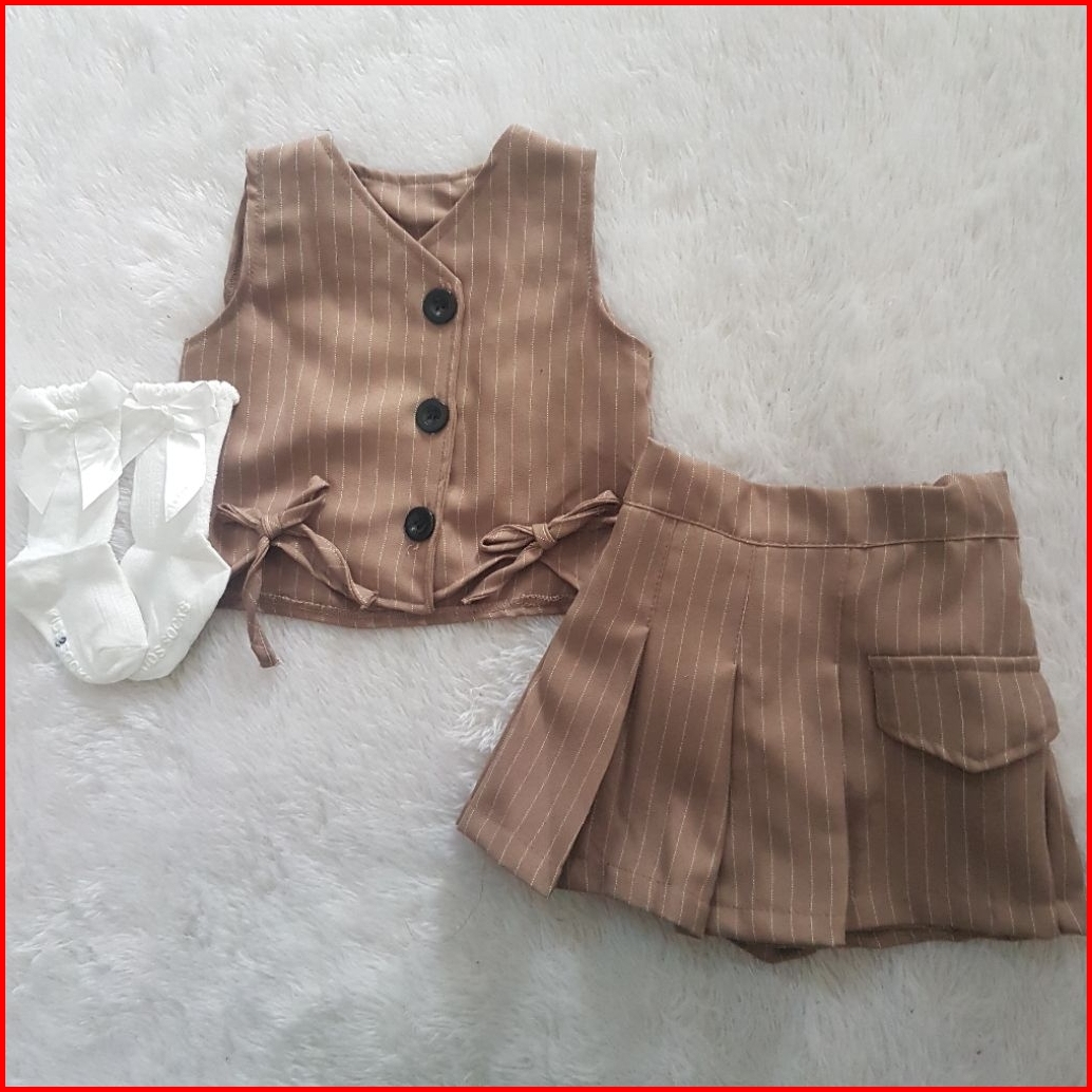 Baju Bayi Nirina Button Skort Set Katun Linen