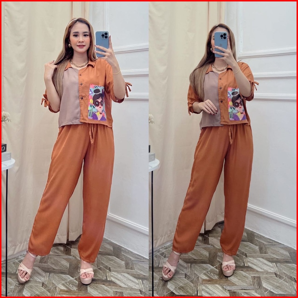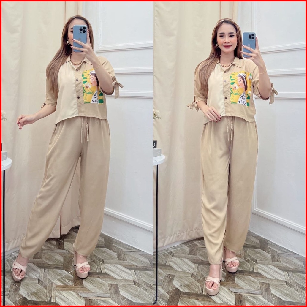 One Set Crop Emblem One Set Hoodie Wanita Atasan Wanita One Set Kekinian