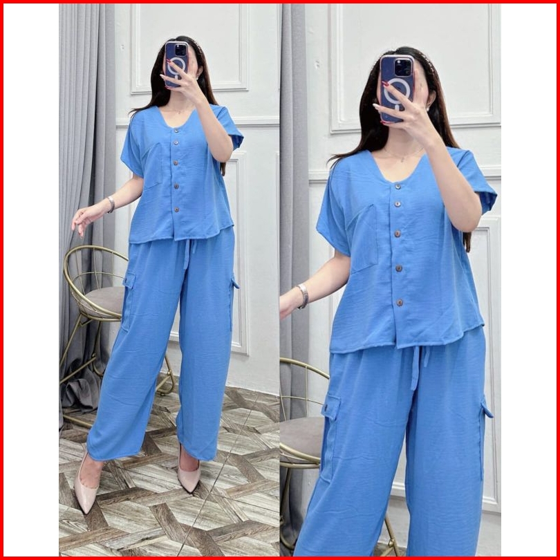 Set Cargo Wanita Oneset Crinkle Terbaru Murah By Syahira Shop07 One Set Wanita Kekinian Setelan Wanita Murah