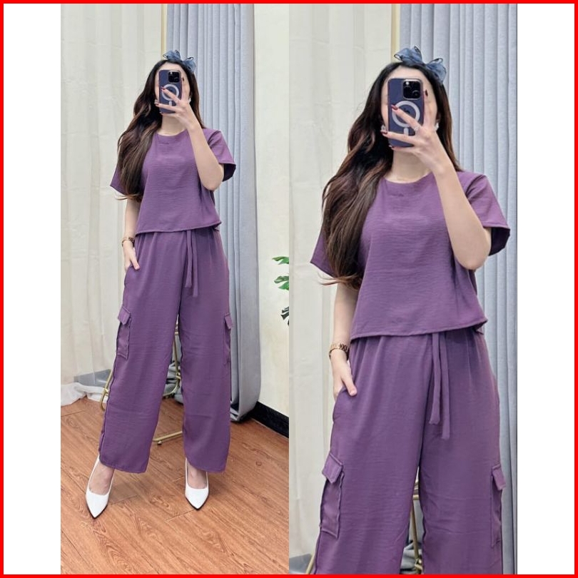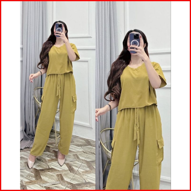 Nagita Set Cargo Set Cargo Wanita Set Crop Top Cargo Kekinian One Set Murah By Syahira Shop07
