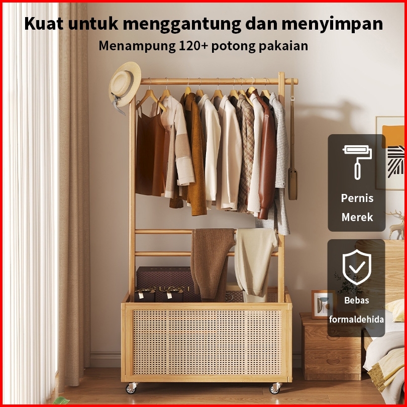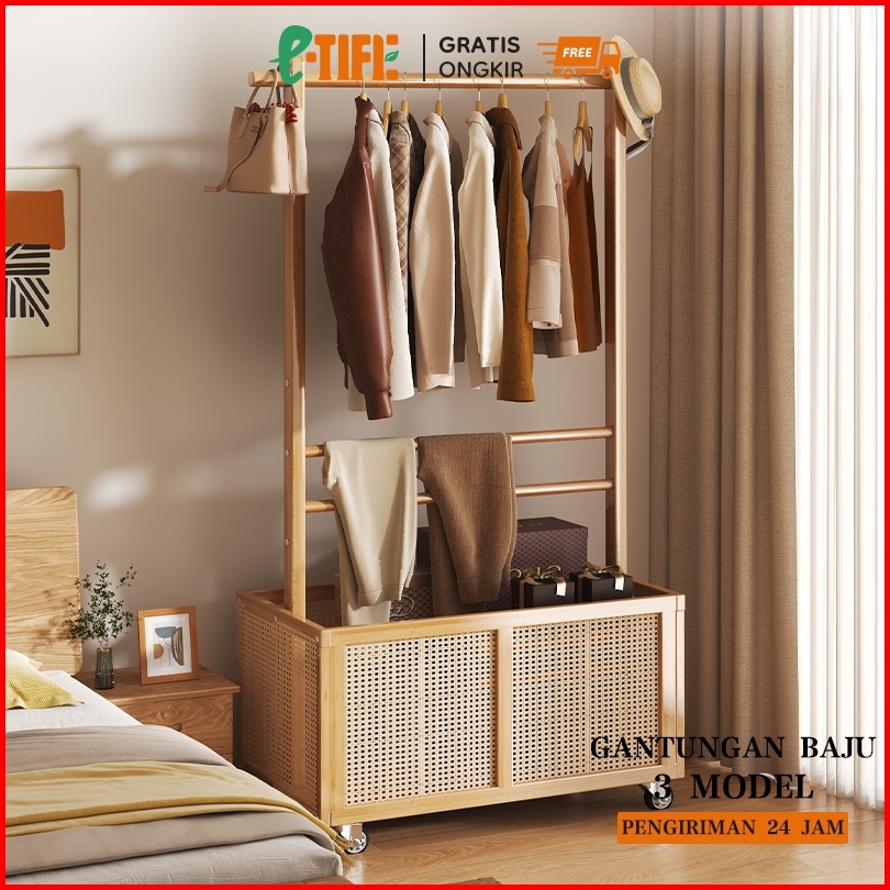 E-tife Rak Gantungan Baju Kayu Berdiri Stand Hanger Kayu Lemari Pakaian Minimalis 165cm Rak Baju Gantung