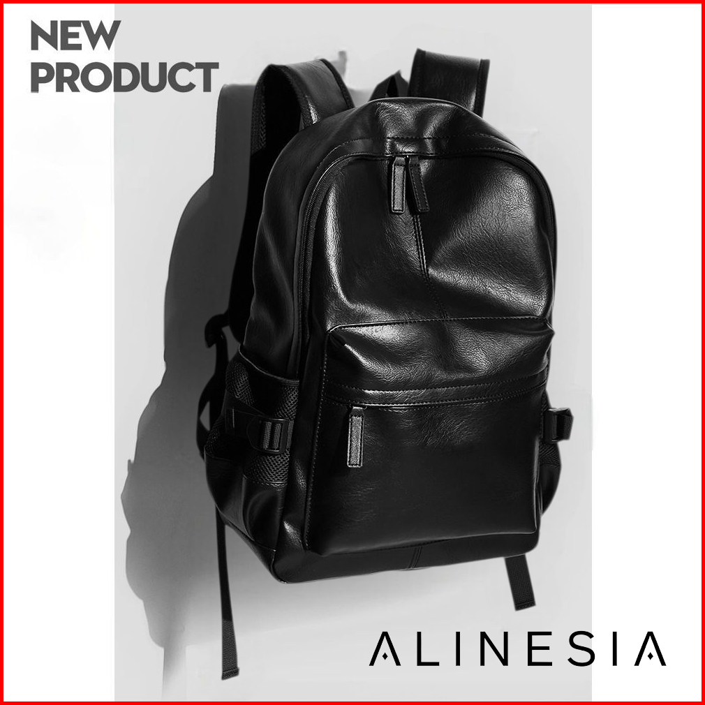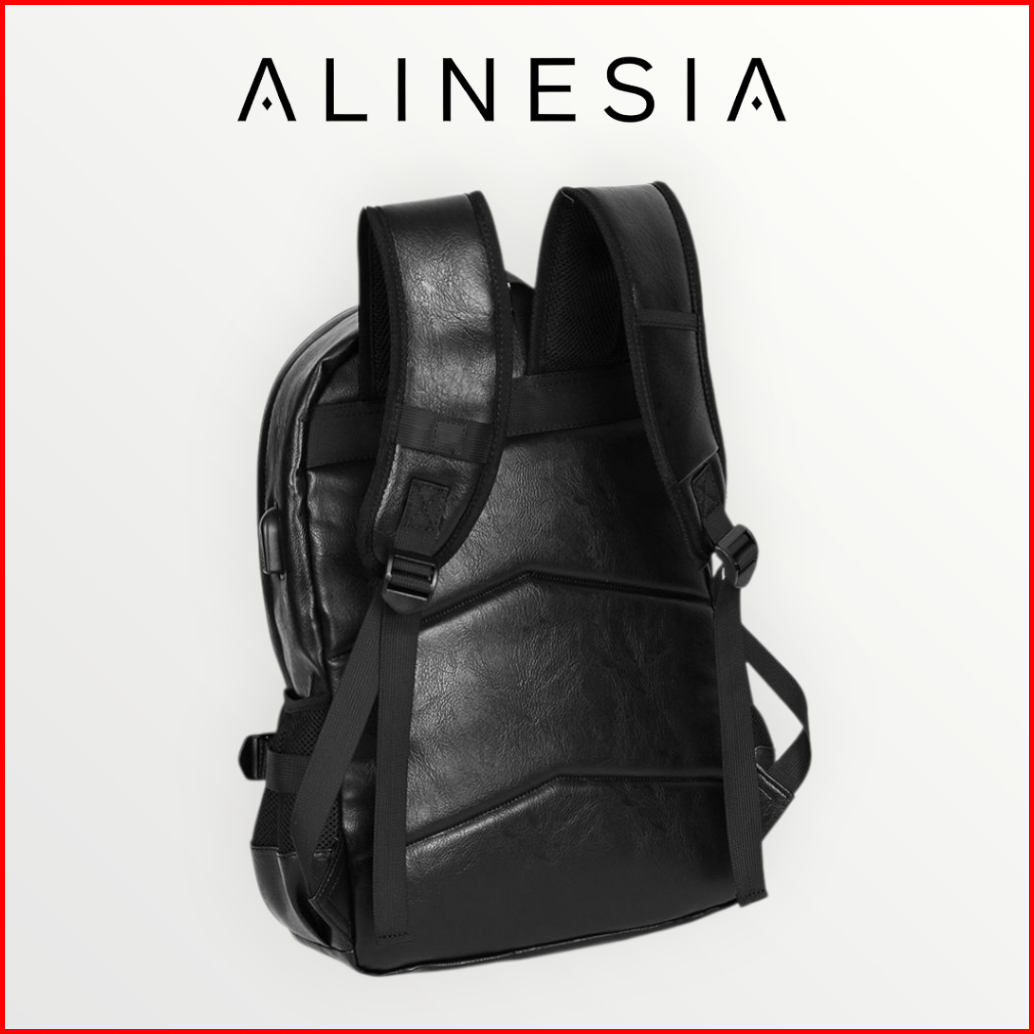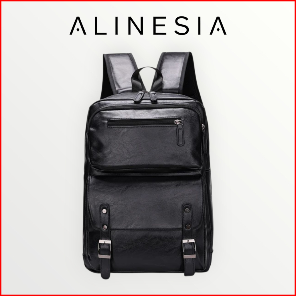 Alinesia - Tas Ransel Pria Bahan Kulit Pu Tebal Laptop Untuk Kuliah Kerja Sekolah Warna Hitam