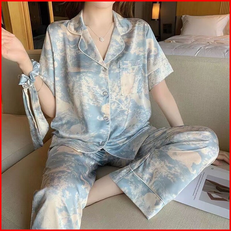 2025 Versi Korea Baru Satin High-end Tie-dye Lukisan Piyama Dan Pakaian Rumahbisa