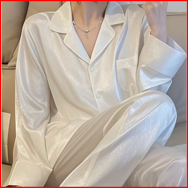 2025 Versi Korea Baru Dari Set Piyama Wanita Kepar Warna Solid Satin Senior