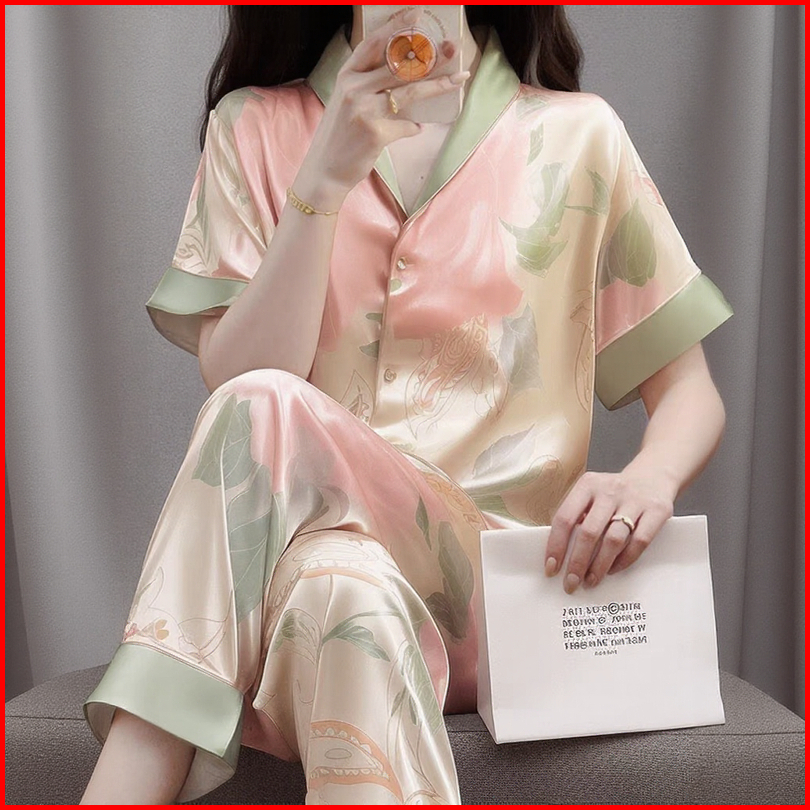 2025 Model Baru Pakaian Tidur Wanita Dari Bahan Ice Silk Dengan Cetakan Premium Dan Lengan Pendek